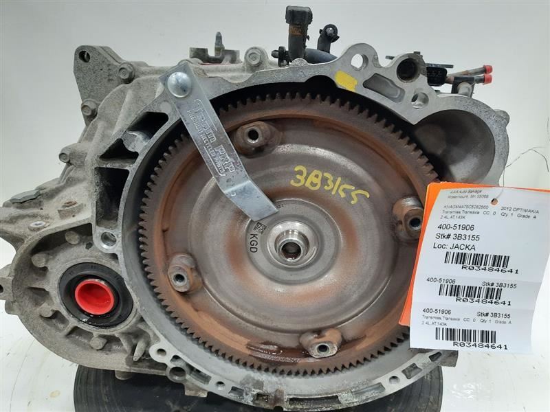 Item Description **6 MONTH WARRANTY!! 60 DAY NO HASSLE RETURNS!!** **This for a USED OEM Transmission/Transaxle Assembly pulled from a 2012 OPTIMAKIA with 143000 actual miles on it.** **Here are our part notes about this specific part:** **2.4L,AT,143K** **Our Part #: 400-51906, 3484641** **Our Stock#: 3B3155** Please see the fitment section below to make sure this will fit your vehicle. Pay special attention to any options listed!!! In some cases, it may only fit vehicle with certain options or specific ID#s as listed below. **OPTIMA 11-13 AT, 2.4L, VIN 7 (8th digit), Korea built** Whats Included? Whats Included? FAQ/ Help Shipping Payment Returns/Warranty #### Whats Included? ``` Here is a short description of what will generally be included with your item. If you would like more information or are unsure if something will come with your item, PLEASE ASK!! A/C Compressor: Includes the clutch/pulley assembly A/C Condenser: Sensors and hoses are not included ABS Units: Include the ATTACHED electronic module unless otherwise noted Alternator: Includes the pulley. Any brackets are not included Axle/CV shaft: Does not include the axle nut Blower Motor: Include the squirrel cage/fan blade Caliper: Includes the bracket and slides. Slides are not covered under warranty Column Switch: Includes wiring (if applicable) up to the first point it can be unplugged Control Arm: Includes the ball joint and any bushings Coolant Overflow Bottle: Cap is included Cowl Vent Panel: See Our Part notes, often sold as one side only Differential Carrier: Does not include axles Door Trim Panel: Includes handle and armrest. Does not include window/lock switches Engine: Included for convenience unless otherwise noted. These parts are not covered under warranty: Intake manifold, fuel injectors, oil pan, sensors, water pump Not included: Throttle body, Turbo, wiring harness exhaust manifold (may be left on in certain cases) Exhaust Manifold: Does not include turbo where applicable Fan Assembly: Includes motors, shroud, and blades. Fuel injectors: See our part notes Fuel Filler Door: Includes hinge. Does not include bolts/hardware Fuel Pump: Includes sending unit and any molded hoses that are non-removable Headlight: Brackets are included unless otherwise noted. HID headlights include the bulbs and ballast Hub: Includes wheel studs Ignition Coil(s): See part notes Interior Rear View Mirror: Does not included bracket glued to windshield Jack: See part notes. If noted as assembly, it will include the lug wrench Mass Airflow Sensor: Does not include housing unless pictured Power Steering Pump: Includes pulley and ATTACHED reservoir. Remote reservoirs and brackets will not be included Power Steering Gear: Includes pitman arm Rack and Pinion: Includes tie rods but they are not covered under warranty Radio: Pay special attention to our fitment description. Often times radios are more than one piece and we sell them each separately Spindle/Knuckle: Does not include hub unless noted Starter: Includes solenoid Strut: Struts are left assembled and include top plate, spring, and dust boot (dust boots on used struts are rarely in perfect shape) Stabilizer Bar: Does not include links or bushings Sunvisor: Does not include clip Taillight: Pay special attention to fitment as we list the trunk lid mounted taillights as well as the corners. Does not include bulbs Temperature Control: Includes all knobs, buttons, and sliders Throttle Body: Includes sensors but they are not covered under our warranty Transmission: Automatic transmissions include torque converters and sensors. Many newer transmissions require a relearn/programming procedure. Manual transmissions do not include any part of the clutch system. Transfer Case: Does not include electric shift motor Washer Reservoir/Bottle: Includes cap unless noted Wheel/Rim: Does not include center cap, tire, or lug nuts Window Regulator: Does not include motor unless noted (most are noted with motor) Wiper Motor: Does not include arms or transmission unless noted Wiper Transmission: Does not include motor or arms unless noted ``` FAQ/ Help #### FAQ/ Help ``` Will this fit my vehicle? Is this the right part? This is the most common question that we get. The fitment information can be confusing if you don't buy replacement parts everyday. Please contact us if you are unsure!! We try to respond to questions as quickly as possible and we are more than happy to answer any questions as best as we can. In order to speed up the process, it is very helpful, but not required, for you to send us your full VIN number along with your question. It looks like its the same color as my car, how can I tell for sure? The best way is to match the manufacturer paint code. Most of the time we include the paint code in our part notes. If you don't know what a paint code is or where yours is located, please feel free to ask. We are happy to help. I only see photos of the vehicle and not the actual part you are selling. Can you send me some? Our most recent listings include actual photos when we can provide them. If you would like an actual photo, we are more than happy to take one after the purchase for your approval before the part ships. In certain cases we will take actual photos before a purchase is made. This is on a case by case basis. Send us a message and we will let you know if it is possible for us to do so I see a wheel that says it is "B" condition, what does that mean? Grading of parts is a very subjective process but we do our best to keep it uniform. Here is a brief description of wheel grades: A Condition, A-COND = This is the highest grade used wheel. It will have very minor imperfections but will be in better condition than 90% of vehicles on the road. B Condition, B-COND = This wheel will have some cosmetic imperfections. It is in average condition for the year and mileage of the donor vehicle. It may have minor scratches and clear coat peeling. This is still a fairly nice looking, used wheel C Co