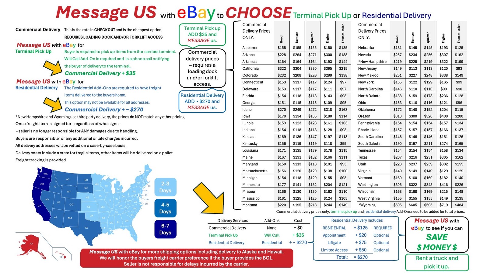 Please review images carefully and ask questions before ordering. The part will be shipped and delivered as described and pictured. Parts have been tested and works as it should unless noted here. **Note:** **Copy/Paste Item Video Link:** https://youtu.be/Ls28rF0ZCSI **Copy/Paste Engine Video Link:** https://youtu.be/sTDVTaUIdX8 _If you have questions about a part or need a specific part, please contact us and let us know. We will follow up with part availability and price._ **Quick Policy Reference:** \- Shipping is free except for freight items, freight items will require an approved shipping quote before order is shipped. \- Freight option 1: Commercial address delivery (requires loading dock and/or forklift access). \- Freight option 2: Contact Us for nearest Terminal pickup (requires will-call add-on to notify buyer for pickup). \- Freight option 3: Contact Us for Residential address delivery (requires add-on optional appointment liftgate add-on). \- We will honor buyers freight carrier preference if buyer provides BOL. \- Once freight item is signed for, regardless of who signs, seller is no longer responsible for ANY damages due to handling. \- Buyers are responsible for any additional or late charges incurred. \- Delivery costs include a crate for fragile items, other items will be delivered on a pallet. \- Freight tracking is provided. \- Freight shipping costs are non-refundable and will be withheld from any refunds given. \- Large items pictured may be broken down for shipping and may need assembly \- Will ship only to verified addresses \- Eligible returns may receive refund deductions on a case by case basis \- Engines - We do not warranty or make any guarantee towards, against, or in support of compression, oil pressure, sensors, timing, over heating, or gaskets. we provide a running motor evidenced by a video, when available. It is up to the installer to insure all mentioned items/tasks are inspected and completed prior to installation.