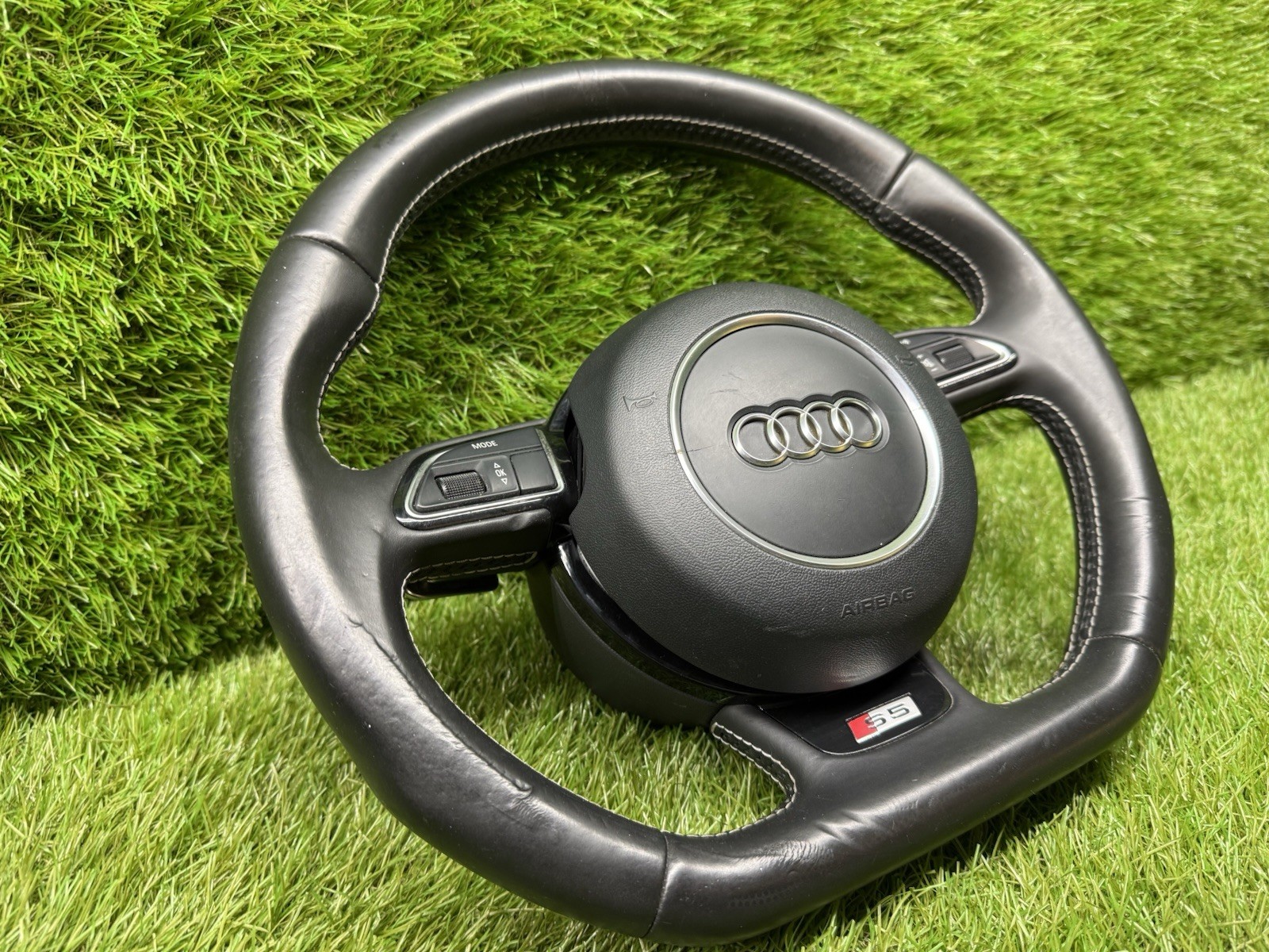 2012 2013 2014 2015 2016 2017 AUDI A4 A5 S4 S5 FLAT BOTTOM STEERING WHEEL W/ PADDLES SHIFT OEM THIS IS AN ITEM THAT HAS BEEN USED PREVIOUSLY. THE ITEM MAY HAVE SOME SIGNS OF COSMETIC WEAR, BUT IS FULLY OPERATIONAL AND FUNCTIONS AS INTENDED. YOU WILL RECEIVE ONLY WHAT IS PICTURED, ALL SHOW ACTUAL PARTS. PLEASE DO NOT ASSUME ANYTHING ELSE IS INCLUDED IF IT IS NOT PICTURED. THIS IS AN OEM DIRECT FIT PART. DON’T RELY ON AFTERMARKET PARTS THAT MAY OR MAY NOT FIT EXACTLY AS DESIGNED. TRUST IN OEM PARTS FOR THE PERFECT FIT AND FINISH FOR YOUR VEHICLE. IF YOU HAVE ANY QUESTION, PLEASE CALL OR TEXT 3O5775296O PLEASE MAKE SURE YOU CHECK THE PART NUMBER TO MATCH THE PART NUMBER ON THE ORIGINAL UNIT FROM YOUR VEHICLE. THE PART NUMBERS MUST MATCH! PLEASE CHECK WITH YOUR MECHANIC BEFORE PURCHASING. WE CAN NOT BE HELD RESPONSIBLE FOR ANY FEES ASSOCIATED WITH INSTALLATION, PROGRAMMING, OR ANY OTHER COSTS. YOU ARE RESPONSIBLE TO MAKE SURE THIS IS THE CORRECT PART FOR YOUR VEHICLE. SHIPMENT : FREE SHIPPING ONLY APPLIES FOR THE CONTINENTAL UNITED STATES HAWAII, ALASKA, PUERTO RICO, AND GUAM PLEASE CONTACT US FOR A SHIPPING QUOTE. ITEM CONDITION: WE ARE A SALVAGE YARD, SO PLEASE REALIZE WE ARE SELLING USED PARTS. PLEASE LOOK THROUGH THE PICTURES FOR ANY SCRATCHES/DENTS ETC. BODY PANELS \*WE DONT SELL PAINT COLOR OR COLOR MATCH SCRATCHES & DENTS NOTED SO PLEASE LOOK THANK YOU 26001