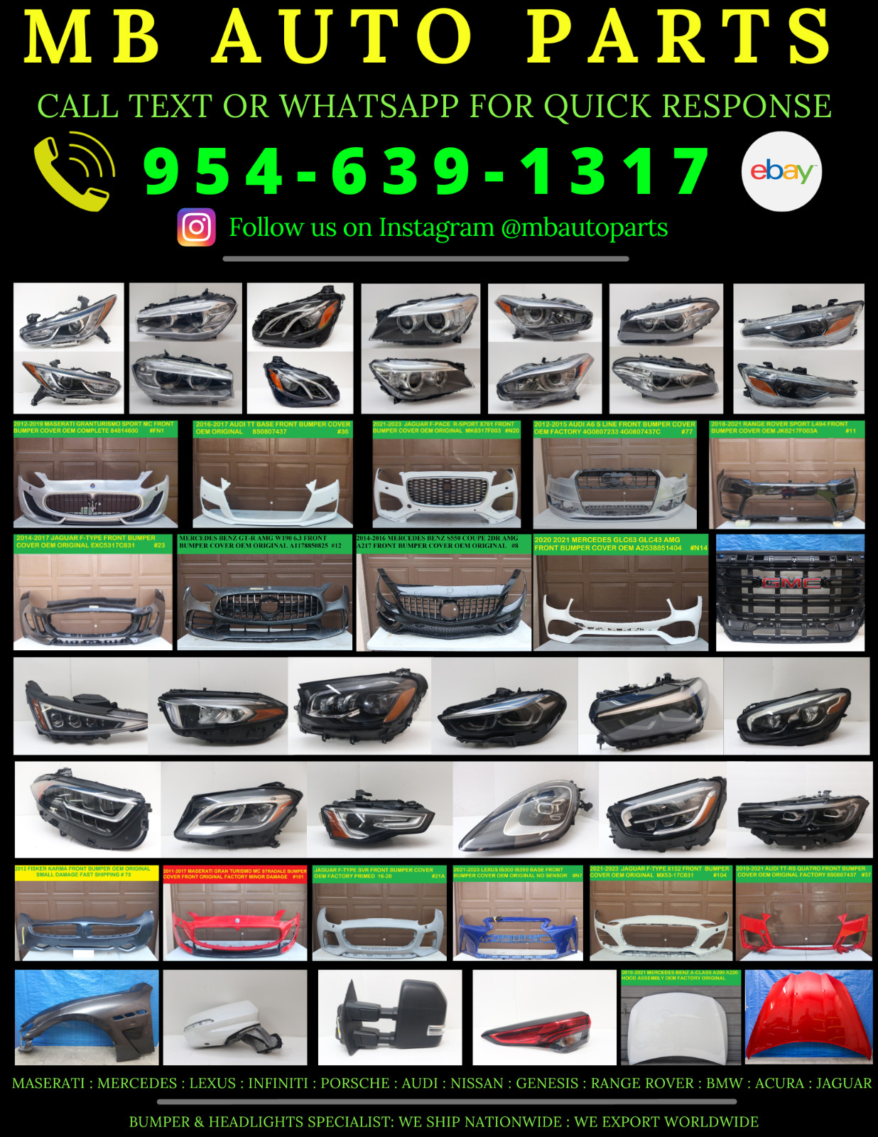 **\\*\\* 🥇Money Back Guarantee Quality Used parts Buy with confidence.** ALL BODY PARTS SALES ARE FINAL NO RETURNS NO EXCHANGES NO EXCEPTIONS! * * * 📈 Description: MODULES NOT INCLUDED : Perfect condition headlight : FULLY REFURBISHED CLEAN . NO BROKEN TABS NO ISSUES Tested and works perfect : 12 Month Warranty : \*\*\*\*NO MODULES : NO MODULES : NO MODULES ....CUSTOMERS MUST INSTALL THEIR OWN MODULES. \*\*\* FAST SHIPPING ALL ITEMS SHIPPED SAME OR NEXT DAY \*\*\* NO RETURNS ON HEADLIGHTS FINAL SALE ONLY * * * 📬Shipping: - All items are shipped Same or Next Day via Standard Shipping. - Customer can choose Expedited Shipping at checkout which will upgrade shipping to either USPS Priority 3-5 days or Fedex 1-5 Days for small charge. - Free shipping is for Lower 48 States only. - HI VI PR WA are not included in Free Shipping, Please Contact us before purchasing for Shipping quote - Some bigger items like dashboards, Fenders Doors Bumper will be shipped Via Freight Truck Service to business address only! * * * 🛡️ Warranty: All used items/parts are Sold AS is where is with no Warranties no exchange or returns. All Items are tested Before shipping and are Guaranteed to work unless noted for "parts only". If item arrives Damage we will return it with no Cost to customer or replace it with new item. Customer Satisfaction is My number 1 Goal to have you as a repeat customer. * * * 🚚 Returns: - All Sales are final no returns no exchanges so please buy only if you are sure about the item - 30 Day returns on all items if the items delivered to Customer is Wrong or does not match the description or damaged in shipping. - Buyer Must pay Return shipping and 20% restocking fee if item is purchased by mistake or change of mind. - No Returns or Exchanges on Items delivered by Truck Freight or International Orders. * * *