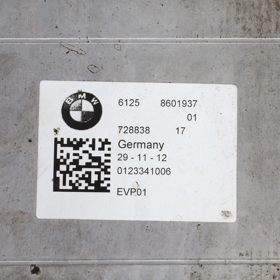 Item Description ### 2013-2015 BMW Active 3 / 5 / 7 Hybrid Power Storage Battery 61258601937 OEM Used ### - Brand: **BMW** - Color: **Jet Black** - Condition: **Used** - Interchange Part Number: **600-00168** - Year: **2013** - Model: **Active 5** - Stock Number: **25440** - Manufacturer Part Number: **61258601937** - Mileage: **156419** - Storage Location: **E3A02** - VIN \#: **WBAFZ9C51DD090654** - Chassis: **F10** - Superseded Part Number **8601937; 61258601937; 8634704; 12148634704; 12148617935** - Country/Region of Manufacture: **Germany** More Items! Item Specifics Item Specifics About US Shipping Returns Thank You #### Item Specifics ``` InterchangeSome items do interchange easily but please do as much research as possible before you purchase. We include as much information and interchange in our listings as possible. Programming Most or all European electronic devices (Stereo, ECU, Modules, etc.) need to be programmed. These items are not "Plug and Play". These items need to be coded to the vehicle they are being installed into. They require specific tools or information to program. Please be aware of this before purchase. Radio / Stereo Most radios require a "security code" or "password" to unlock the unit for use. We do not provide or have access to these security codes and most dealers do not offer the codes over the phone. You must install the stereo unit into the vehicle and take the vehicle to a manufacturer dealer to be unlocked. ``` About US #### About US ``` A Place You Can Trust We know that the auto dismantling industry has a reputation of overcharging and up-selling nonessential parts. Specialized German Is Your Used Parts Specialist We are one of the largest, most experienced, and most organized BMW and Porsche recycling facilities in the world -- (over 10,000 vehicles dismantled). Although BMW and Porsche parts are our specialty, we also carry a large inventory of used parts for other European vehicles.Specializing In BMW And Porsche Parts OnlyWe offer you our vast inventory of used parts at the lowest prices anywhere, saving you big on all of your used parts needs.Whether you need a used engine or just a used window crank, we're here to help. Remember... when it comes to your BMW and Porsche, our goal is to put you back in the driver's seat. And with over ten thousand vehicle's dismantled for parts, that goal is a reality.Putting you back on the road is only half the story. We know that keeping you there is just as important and we make customer service after the sale just as important as getting the sale in the first place - if not more important !Experienced Used Parts ExpertsOur staff of highly trained experts are committed to giving you the best possible customer service experience. Specialized German uses specialized interchange data and advanced technologies to provide consistently accurate products and superior service. We use a state-of-the-art computerized order management system, you can be assured that we'll locate your parts fast and track your order every step of the way. Our goal is 100% total customer satisfaction.Better Data Means Better Used PartsWe use your vehicles DNA (the VIN number and factory part numbers) to guarantee you get the exact parts to fit your application. No more wasted time on mismatched parts, application errors, and return/replacement delays.More Data Means More Accurate PartsWe interchange and track 10 times more parts on every vehicle ? giving you access to virtually every part on every car. This means less hassle and no delays waiting on dealer backorders for small obscure items. We stock over 500,000 used parts in 60 different part groups and over 2000 part types. From engines to emblems ? we really do have it all! ``` Shipping #### Shipping ``` Domestic Shipping Policy Shipment processing time: All orders are processed within 1-3 business days. Orders are not shipped or delivered on weekends or holidays.If we are experiencing a high volume of orders, shipments may be delayed by a few days.Please allow additional days in transit for delivery. If there will be a significant delay in shipment of your order, we will contact you via email or telephone.Shipping Rates & Delivery EstimatesShipping charges for your order will be calculated and displayed at checkout.We offer free shipping on over 99 percent of our parts that are shipped via USPS, UPS or FedEx.Shipping is not free on items that require a pallet or freight truck.Overnight delivery is not available.Specialized German Recycling ships to addresses within the U.S.Shipment Confirmation & Order TrackingYou will receive a Shipment Confirmation email once your order has shipped containing your tracking number(s). The tracking number will be active within 24 hours.Customs, Duties And TaxesSpecialized German Recycling is not responsible for any customs and taxes applied to your order. All fees imposed during or after shipping are the responsibility of the customer (tariffs, taxes, etc.).DamagesSpecialized German Recycling is not liable for any products damaged or lost during shipping. If you received your order damaged, please contact the shipment carrier to file a claim. Please save all packaging materials and damaged goods before filing a claim. ``` Returns #### Returns ``` All Specialized German Recycling Parts Are Guaranteed To Work Properly For A Period Of 30 Days From The Purchase Date (Printed On The Invoice).This Standard Warranty Does Not Cover Installation Labor, Removal, Or Rental Car Expenses That May Result From A Warranty Claim. You Can Pack And Send Your Return To Us In Just A Few Simple Steps: Exchanges are available for most items, if there is an issue with the item this is usually the easiest step to perform. Please return items with an RMA number clearly visible on the outside of the box.Pack the items in the original boxes together with the original packing slip or invoice. Mail the package back to Specialized German Recycling -- 3688 Omec Circle -- Rancho C