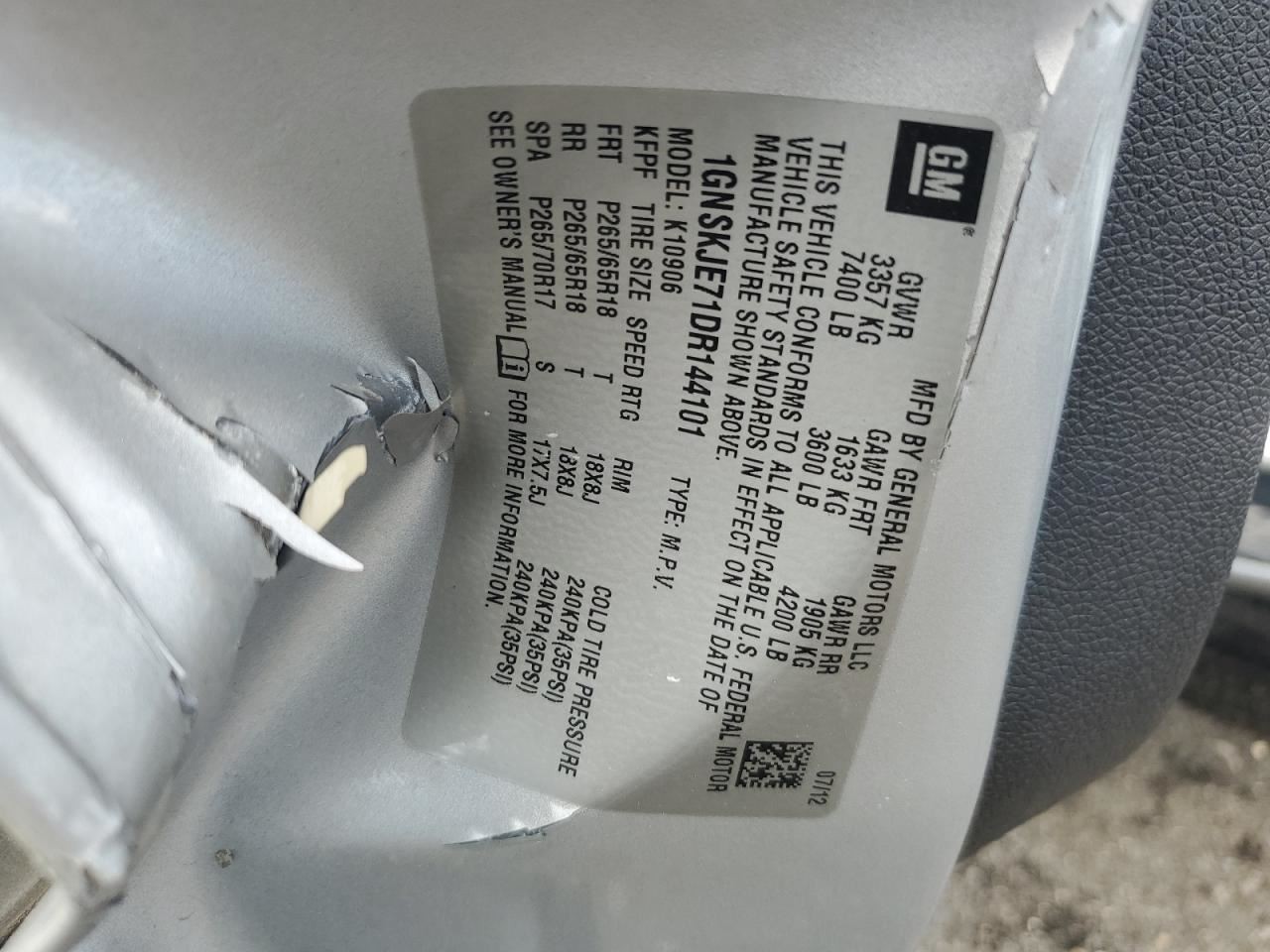 - VIN #: 1GNSKJE71DR144101