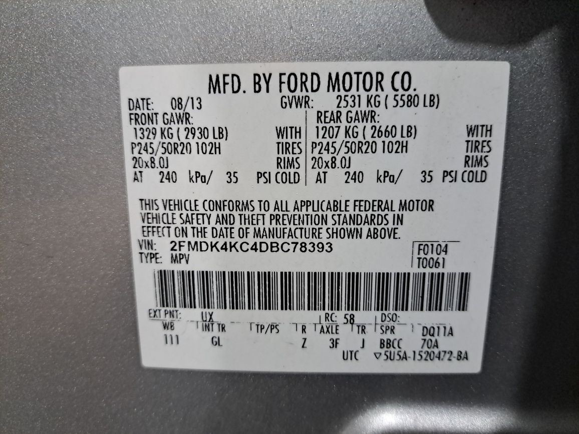 - VIN #: 2FMDK4KC4DBC78393