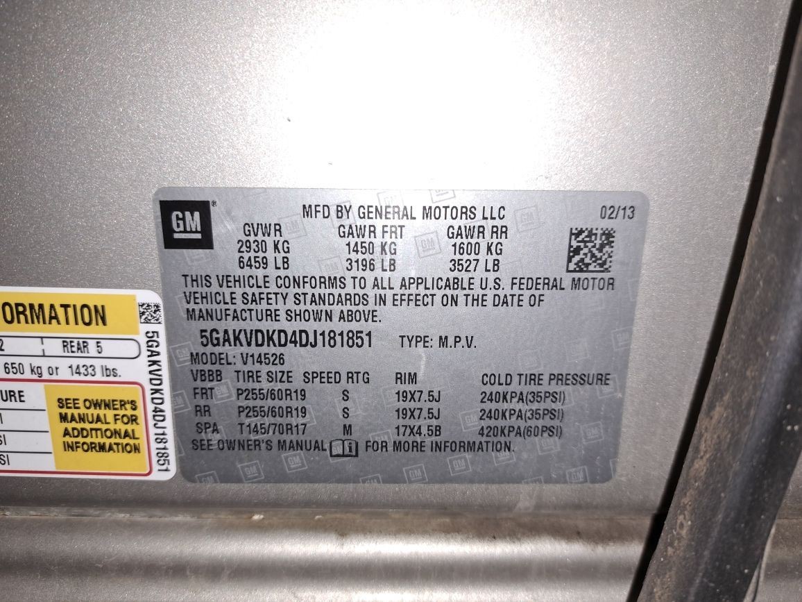 - VIN #: 5GAKVDKD4DJ181851