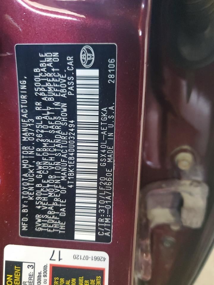 - VIN #: 4T1BK1EB4DU032494