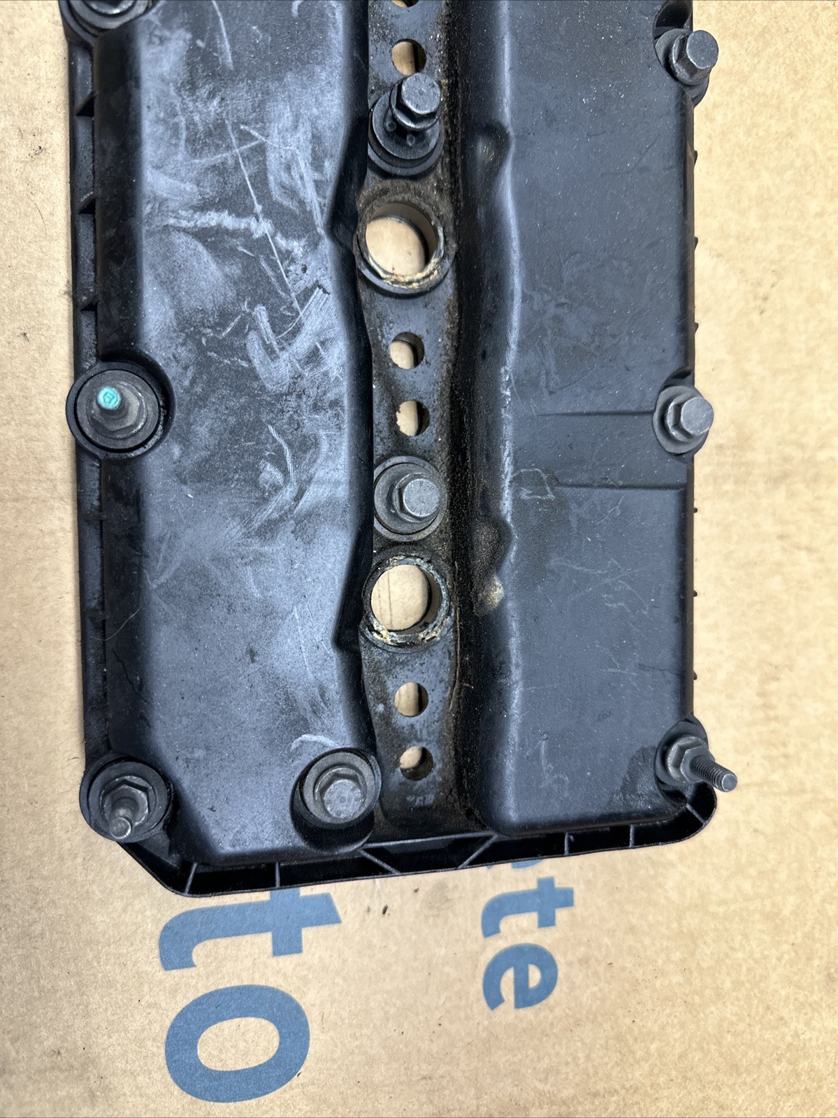 The product is a used OEM right valve cover for a 2014-2019 Dodge Ram 3.0L diesel engine. Used dirty but good condition no cracks