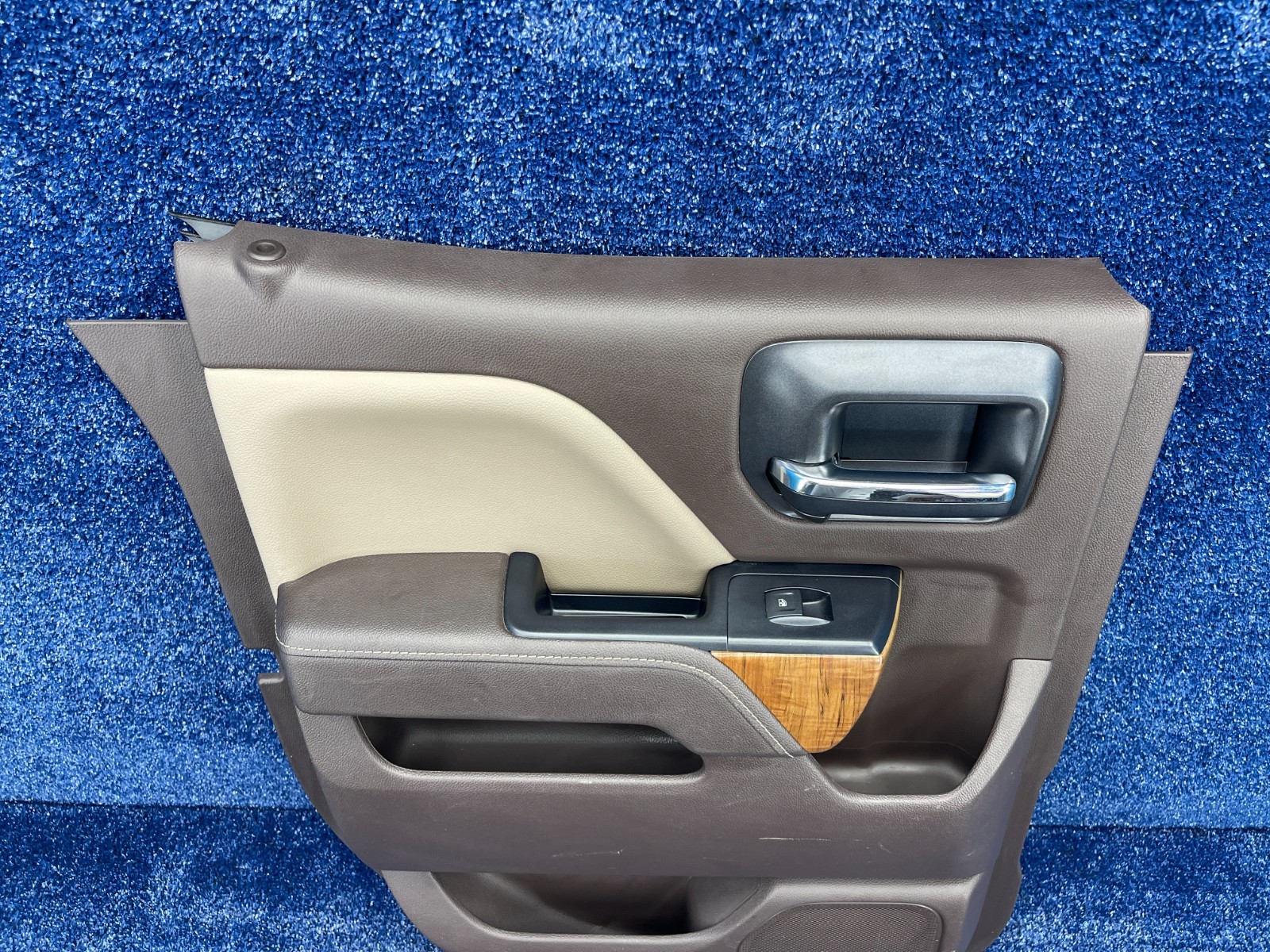 # 2014-2018 GMC Sierra 1500 Rear Left Door Trim Panel GMC SIERRA 1500 SLT BOX: NB VIN: 1GTR1NEC7JZ180062 ### Description: Genuine OEM **Rear Left (Driver Side) Interior Door Trim Panel** removed from a 2018 GMC Sierra 1500 SLT. This premium panel features a two-tone brown/cocoa leather finish with wood grain accents and chrome door handle. Includes the window switch and integrated speaker grille. Original insulation is present on the back side. **Condition:** **Excellent used condition.** Leather and wood trim are clean and free of major scratches or damage. All mounting tabs on the back appear intact. Switch and handle have been tested and function properly. What you see is exactly what you will receive. ### Compatibility & Interchange: Direct fit for 2014-2018 GMC Sierra 1500 and Chevrolet Silverado 1500 Crew Cab models. **Position: Rear Left (Driver Side).** **Color: Brown / Cocoa interior scheme. Please match part number 84365053 and verify your interior trim color before purchase.** ModelYear RangeNoteGMC Sierra 15002014-2018Rear Left (SLT/Denali)Chevrolet Silverado 15002014-2018Rear Left (LTZ/High Country) ### DONOR VEHICLE INFO: **Year/Make/Model/Trim:** 2018 GMC SIERRA 1500 SLT **VIN:** 1GTR1NEC7JZ180062 **Mileage:** 151,000 miles **Engine:** 5.3L V8 (L83) **Interior Trim:** Brown Leather / Wood PLEASE READ BELOW When you buy our item you agree to our terms and conditions. **ITEM CONDITION:** Good / Normal Use / As shown in the photos. **PLEASE VERIFY COMPATIBILITY BEFORE BUYING.** IT IS THE BUYER'S RESPONSIBILITY TO DETERMINE WHETHER THE PART WILL FIT HIS/HER CAR. WHAT YOU SEE IN THE PHOTOS IS WHAT YOU WILL RECEIVE. Auto Element Hub