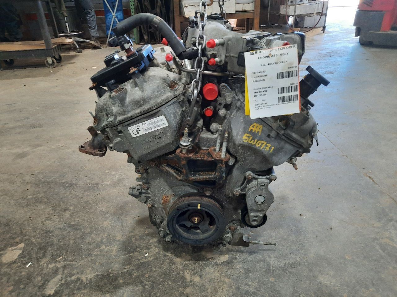 Item Description **6 MONTH WARRANTY!! 60 DAY NO HASSLE RETURNS!!** **This for a USED OEM Engine / Motor Assembly Assembly pulled from a 2014 EXPLORER with 146000 actual miles on it.** **Here are our part notes about this specific part:** **3.5L,146K,RAN GOOD** **Our Part #: 300-09635B, 4265496** **Our Stock#: 5W0731** Please see the fitment section below to make sure this will fit your vehicle. Pay special attention to any options listed!!! In some cases, it may only fit vehicle with certain options or specific ID#s as listed below. **EXPLORER 13 3.5L, w/turbo, (VIN T, 8th digit)** **EXPLORER 14-19 3.5L, w/turbo, (VIN T, 8th digit), w/o oil cooler** **FLEX 13-19 (3.5L), VIN T (8th digit), (turbo)** **MKS 13-16 3.5L (VIN T, 8th digit, turbo)** **MKT 13-19 3.5L (VIN T, 8th digit, turbo)** **TAURUS 13-19 3.5L, w/turbo, (VIN T, 8th digit), w/o oil cooler** Whats Included? Whats Included? FAQ/ Help Shipping Payment Returns/Warranty #### Whats Included? ``` Here is a short description of what will generally be included with your item. If you would like more information or are unsure if something will come with your item, PLEASE ASK!! A/C Compressor: Includes the clutch/pulley assembly A/C Condenser: Sensors and hoses are not included ABS Units: Include the ATTACHED electronic module unless otherwise noted Alternator: Includes the pulley. Any brackets are not included Axle/CV shaft: Does not include the axle nut Blower Motor: Include the squirrel cage/fan blade Caliper: Includes the bracket and slides. Slides are not covered under warranty Column Switch: Includes wiring (if applicable) up to the first point it can be unplugged Control Arm: Includes the ball joint and any bushings Coolant Overflow Bottle: Cap is included Cowl Vent Panel: See Our Part notes, often sold as one side only Differential Carrier: Does not include axles Door Trim Panel: Includes handle and armrest. Does not include window/lock switches Engine: Included for convenience unless otherwise noted. These parts are not covered under warranty: Intake manifold, fuel injectors, oil pan, sensors, water pump Not included: Throttle body, Turbo, wiring harness exhaust manifold (may be left on in certain cases) Exhaust Manifold: Does not include turbo where applicable Fan Assembly: Includes motors, shroud, and blades. Fuel injectors: See our part notes Fuel Filler Door: Includes hinge. Does not include bolts/hardware Fuel Pump: Includes sending unit and any molded hoses that are non-removable Headlight: Brackets are included unless otherwise noted. HID headlights include the bulbs and ballast Hub: Includes wheel studs Ignition Coil(s): See part notes Interior Rear View Mirror: Does not included bracket glued to windshield Jack: See part notes. If noted as assembly, it will include the lug wrench Mass Airflow Sensor: Does not include housing unless pictured Power Steering Pump: Includes pulley and ATTACHED reservoir. Remote reservoirs and brackets will not be included Power Steering Gear: Includes pitman arm Rack and Pinion: Includes tie rods but they are not covered under warranty Radio: Pay special attention to our fitment description. Often times radios are more than one piece and we sell them each separately Spindle/Knuckle: Does not include hub unless noted Starter: Includes solenoid Strut: Struts are left assembled and include top plate, spring, and dust boot (dust boots on used struts are rarely in perfect shape) Stabilizer Bar: Does not include links or bushings Sunvisor: Does not include clip Taillight: Pay special attention to fitment as we list the trunk lid mounted taillights as well as the corners. Does not include bulbs Temperature Control: Includes all knobs, buttons, and sliders Throttle Body: Includes sensors but they are not covered under our warranty Transmission: Automatic transmissions include torque converters and sensors. Many newer transmissions require a relearn/programming procedure. Manual transmissions do not include any part of the clutch system. Transfer Case: Does not include electric shift motor Washer Reservoir/Bottle: Includes cap unless noted Wheel/Rim: Does not include center cap, tire, or lug nuts Window Regulator: Does not include motor unless noted (most are noted with motor) Wiper Motor: Does not include arms or transmission unless noted Wiper Transmission: Does not include motor or arms unless noted ``` FAQ/ Help #### FAQ/ Help ``` Will this fit my vehicle? Is this the right part? This is the most common question that we get. The fitment information can be confusing if you don't buy replacement parts everyday. Please contact us if you are unsure!! We try to respond to questions as quickly as possible and we are more than happy to answer any questions as best as we can. In order to speed up the process, it is very helpful, but not required, for you to send us your full VIN number along with your question. It looks like its the same color as my car, how can I tell for sure? The best way is to match the manufacturer paint code. Most of the time we include the paint code in our part notes. If you don't know what a paint code is or where yours is located, please feel free to ask. We are happy to help. I only see photos of the vehicle and not the actual part you are selling. Can you send me some? Our most recent listings include actual photos when we can provide them. If you would like an actual photo, we are more than happy to take one after the purchase for your approval before the part ships. In certain cases we will take actual photos before a purchase is made. This is on a case by case basis. Send us a message and we will let you know if it is possible for us to do so I see a wheel that says it is "B" condition, what does that mean? Grading of parts is a very subjective process but we do our best to keep it uniform. Here is a brief description of wheel grades: A Condition, A-COND = This is the highest grade used wheel. It will have very minor imperfections but will be in better condition than 90% 