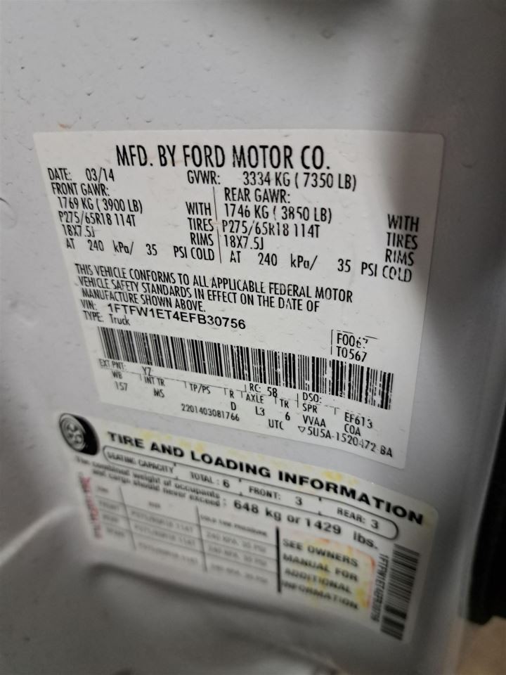 - VIN #: 1FTFW1ET4EFB30756
