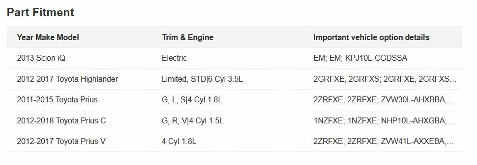 Part: Inverter Water Pump Pulled From: 2014 Toyota Prius Condition: Used Condition, Good, Exactly as pictured. Pictures of actual part Part Number: G9040-52010 Fitment: match with part number, see image 2 for fitment chart. Please use the part number, pictures and description** **provided to make sure this part fits your vehicle.** - **We do not guarantee color matching unless we match the color code that you provide to our vehicle.** - **Buyer is responsible for payment of return shipping.** - **On listings with Free Shipping, we will deduct the original shipping cost paid by us, when submitting a refund to you.** - **Shipping charge is non-refundable.** - **20% restocking fee of the purchase price will be charged on all returned parts except for defective or not as described items.** - **No returns accepted on International shipments** **Payment** - **Paypal** - **Credit Cards – All major credit cards; VISA, Mastercard, American Express, Discover** **Local** - **State of Nebraska Residents subject to 7.25% sales tax.** **Thank** **You for your interest in our listing. If you are not satisfied for any** **reason, please contact us before submitting feedback and we will do our** **best to resolve the issue and make sure you are 100% satisfied with your** **purchase.**