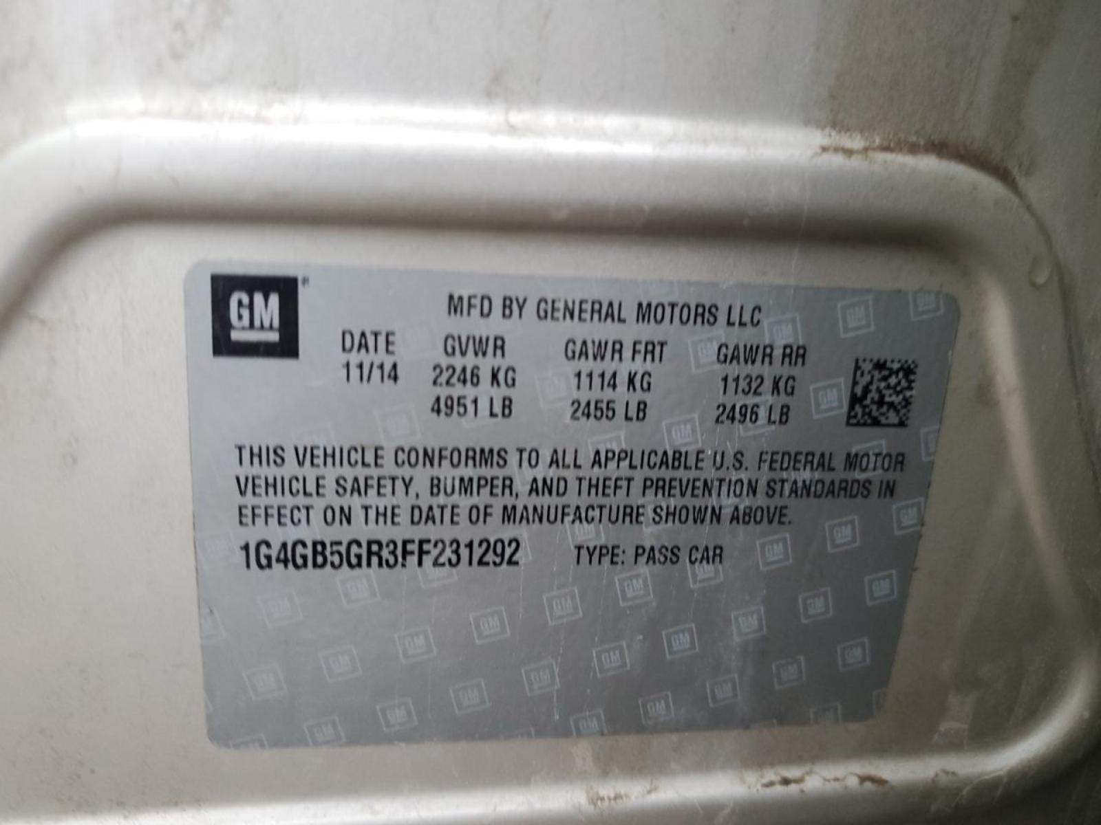 Mullins Auto ![Mullins Olive, IL Business Hours (EST/EDT)Mon - Fri 7am - 4pmClosed Saturday & Sunday Year: 2015 Model: Side: Type: Category: Condition: \[ABOVE\_AVERAGE\] VIN: 1G4GB5GR3FF231292 Vehicle Stock #:C25794 Part Stock #: 0007460816 Additional notes: A FWD # PLEASE READ - Please make sure this part is exactly what you need, including part numbers matching when needed. - If you are not certain that YOUR PART NUMBER matches please go back to your vehicle to retrieve it or call your mechanic or dealer to confirm. - Mounting hardware is not included with any parts! # Damaged Items - In the rare situation an item arrives damaged, please contact us immediately for resolution: - Send us the following: - Photos of the part - Photos of the original packaging the part arrived in # Payments - When purchasing our parts, you agree to immediately pay in full for your order. - Orders that go unpaid 96 hours will be cancelled and made available to other buyers. # Super Fast Shipping! - We ship by UPS and regional freight/LTL carriers - Heavy/bulky items shipped by freight will be shipped to a TERMINAL for your pick-up. It can be shipped to a business with a dock or forklift access. - Businesses without a dock or forklift or a home address will be subject to a liftgate fee. - Businesses without a store front are NOT considered a business - (business address) - Residential delivery fees will apply. - Please message us FIRST if you want delivery to a home or business so we can provide a price. Please message us before purchasing if you would like to pick up. - No Returns on sheet metal, core engines, or parts only items. If you have questions or concerns about fitment, please contact us prior to purchase. # Feedback After your order has been received, please let us know if there is any issues. We strive for a perfect feedback. If there is any reason you will not leave us a perfect feedback, please contact us so we can make it right and earn that positive response!