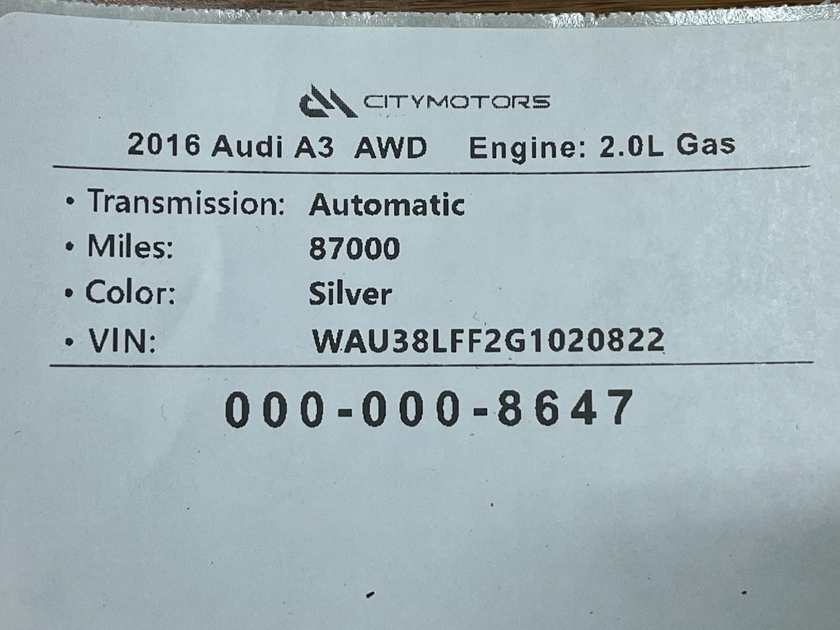 8V1864436 8V1864436QA5 WAU38LFF2G1020822 8V7 07.21.2025 We are very grateful for your interest in our listing. The item you see in the photos is exactly what we offer, without any additional equipment that is not visible. Please carefully review the photos and the description of the item's condition and fitments before making a purchase to avoid any misunderstandings. The left side means the Drivers side and the Right side means the Passenger side :) The mileage and information about the donor's car can be found on the label in the pictures. Shipping: We offer fast shipping. Shipping costs for oversized items may vary depending on your location. In such cases, we'll reach out to you after the purchase to discuss delivery costs. \*If you have a commercial address please provide it before purchase and let us know if you have the forklift or a tool to remove the order from the truck. Local Pick-up: If you prefer local in-person pickup, it is possible. Our address is 2150 N West St, River Grove, IL 60171. Working hours: Monday - Friday \[7 am - 6 pm \] Saturday \[7 am - 12 pm\]Please get in touch with us to arrange the pickup. You have 30 days for a potential item return. Other Parts for Your Selected Vehicle: We have many parts for the same vehicle model. If you need something else or have questions about the selected or other parts, please feel free to contact us. Thank you for trusting the City Motors Team