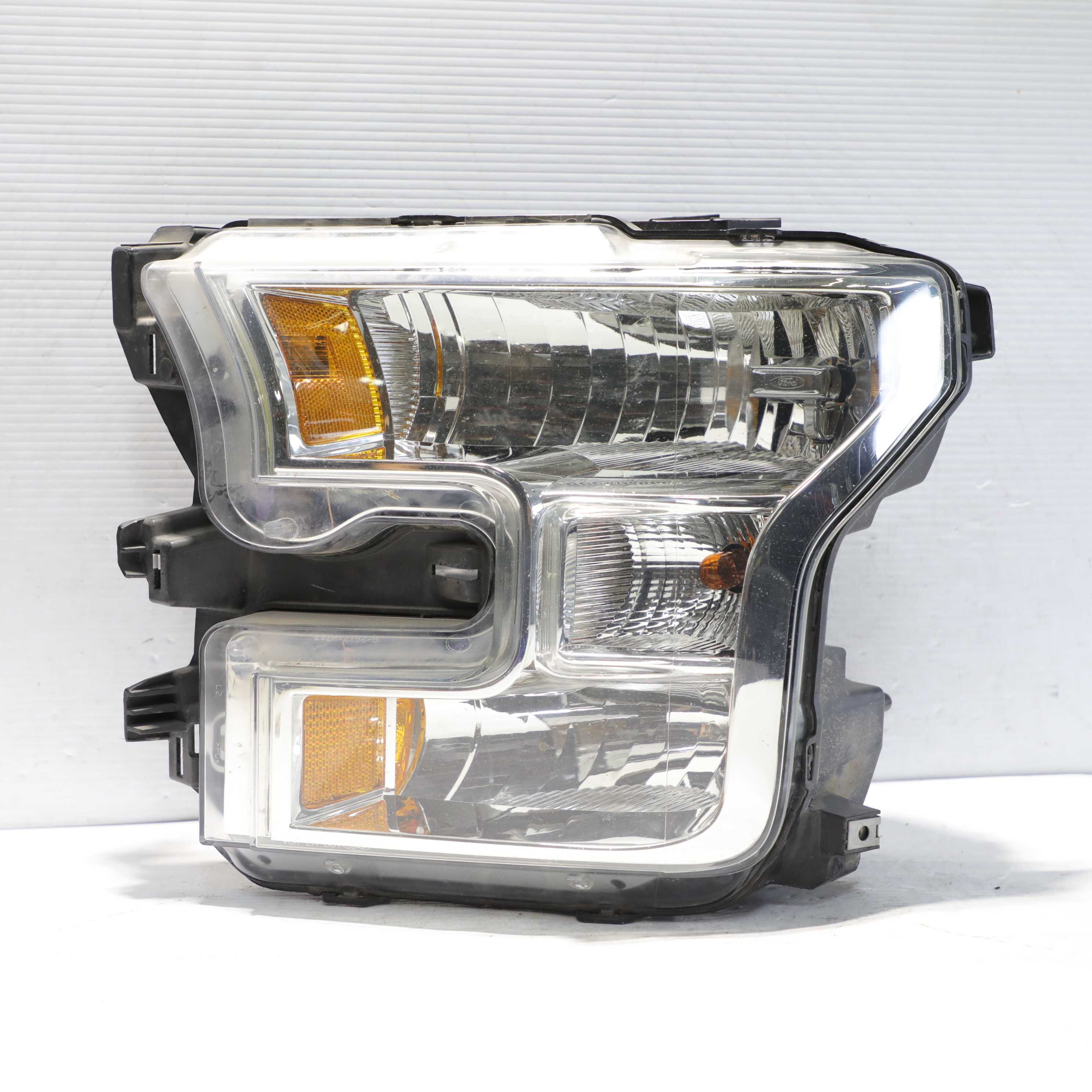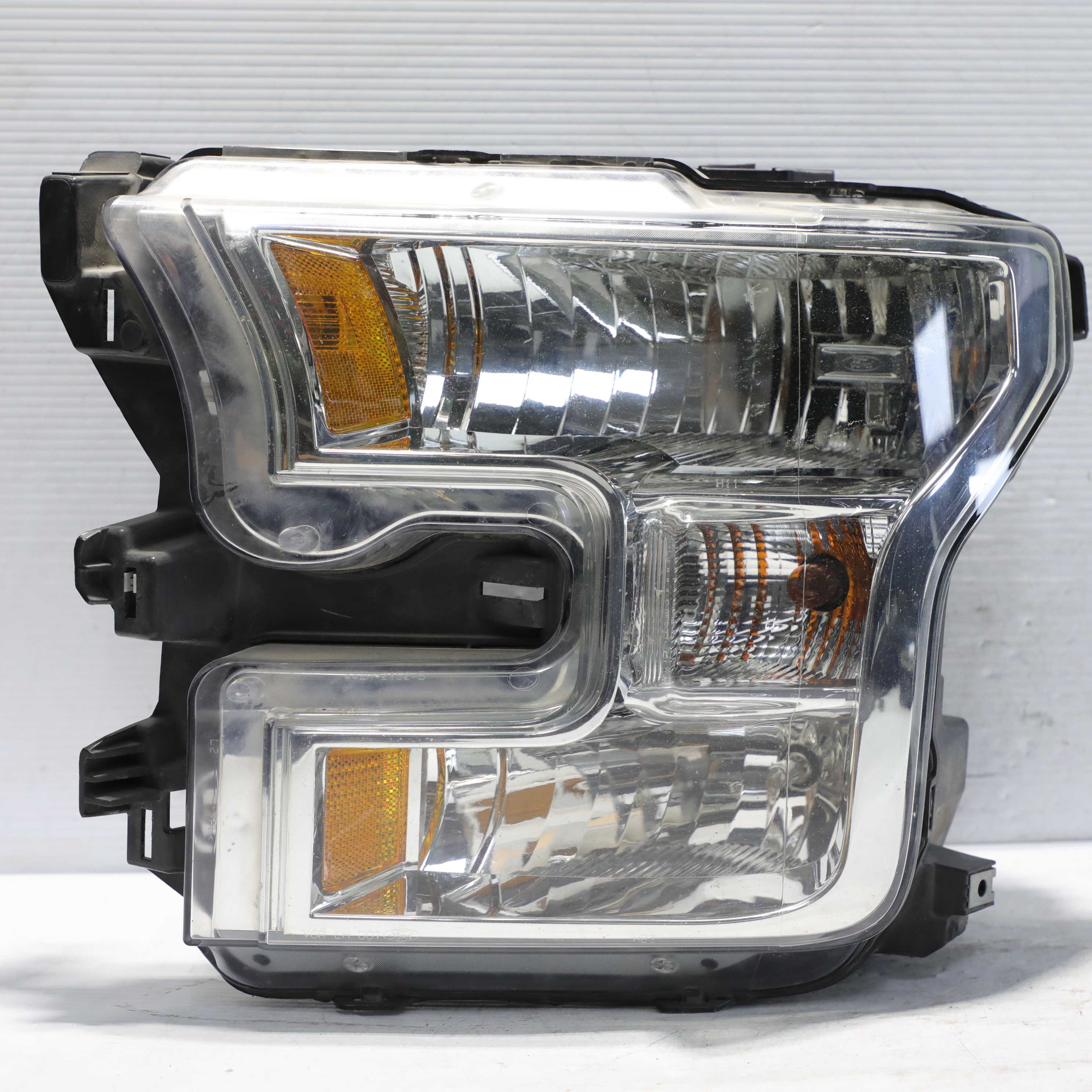 At Pebbles Auto Parts, we strive to be your number one source for automotive parts and accessories. offering high quality products, for the best price possible ### 2015-2017 Ford F150 Base Chrome Halogen Left Side Headlight Assembly OEM Please Review All Images Below                       Item Description Item Description Shipping Policy About Us #### Please Review Our Images To See Any Possible Highlighted Issues With This Part You Are Buying **_Stress Cracks on Lens_** **_This Light Has Light Dust Inside Lens_** **_All Tabs/Mounting Brackets Are Intact_** **_Halogen Bulbs are included but not tested._** **_This Headlight Has Missing Bottom Bracket_** Shipping #### -Shipping of lights within 24-48 hours of payment processing. -We use a foam packaging machine to professionally secure and protect our lights for shipping. -Every purchase includes full insurance as part of the shipping fee. -Please notify us immediately if your light is damaged in shipping. Payment #### Payment Description Policy #### **Disclaimer:** The light pictured is the light you will receive. Be sure to view all pictures to make sure the light is the correct one. It is important that you verify that you are buying the correct part for your vehicle. You, the buyer, are responsible for ordering the correct part. If you have any questions regarding the fitment of the light, please contact us. No returns are provided if you buy the wrong light. **Return Policy:** **Returns are accepted within 30 days.