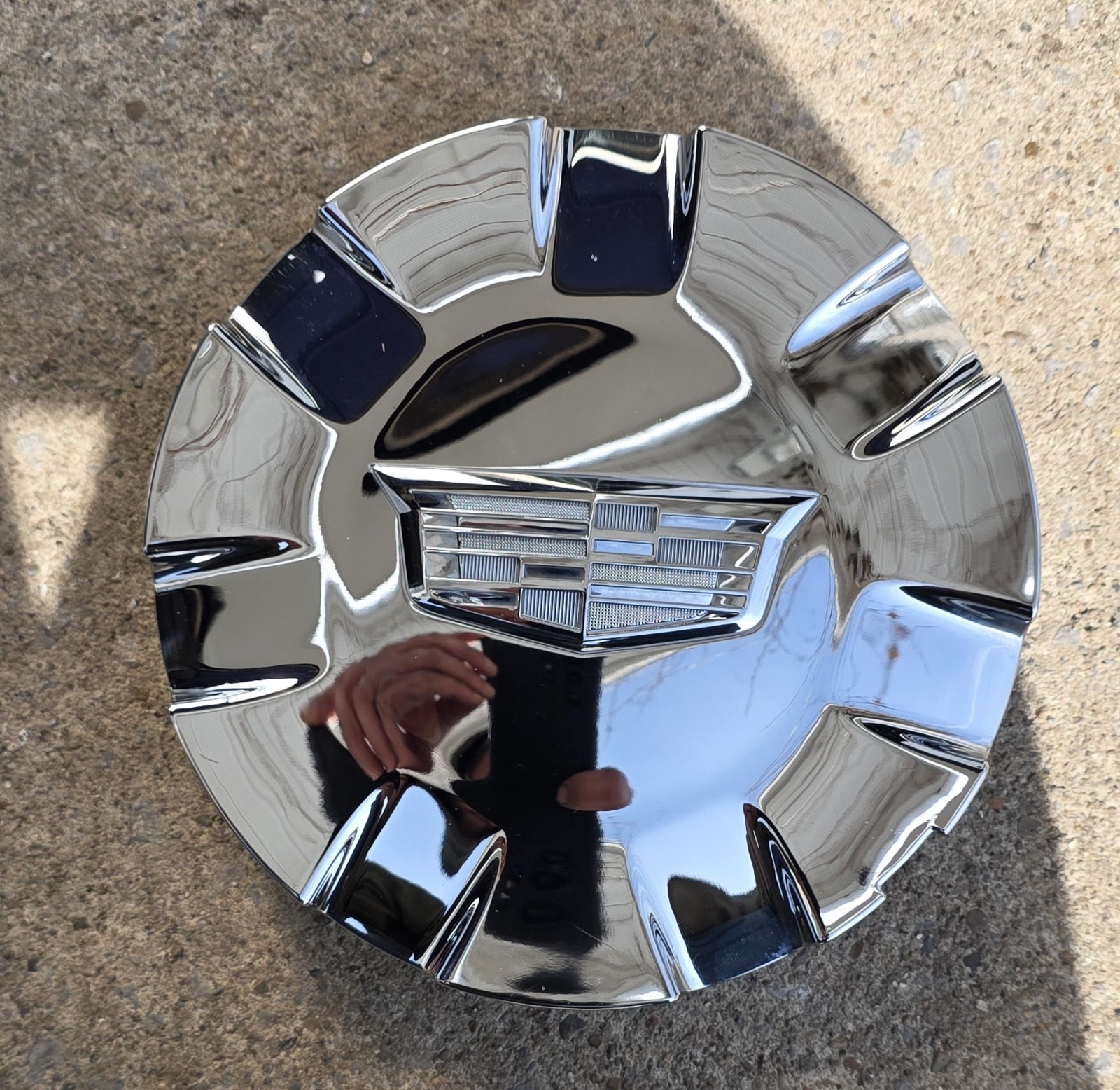 CC7/ BOARD The product is a 2015 - 2020 Cadillac Escalade Chrome OEM Center Cap with part number 23432313 on the back. This single center cap is made of chrome material and is manufactured by Cadillac Factory, OEM. It is designed to be placed on the rear, left, front, or right side of the vehicle and features the Cadillac emblem. The center cap is an interchange part with number 4737B and has a sleek chrome finish. Ideal for adding a stylish touch to the wheels of your Cadillac SUV.