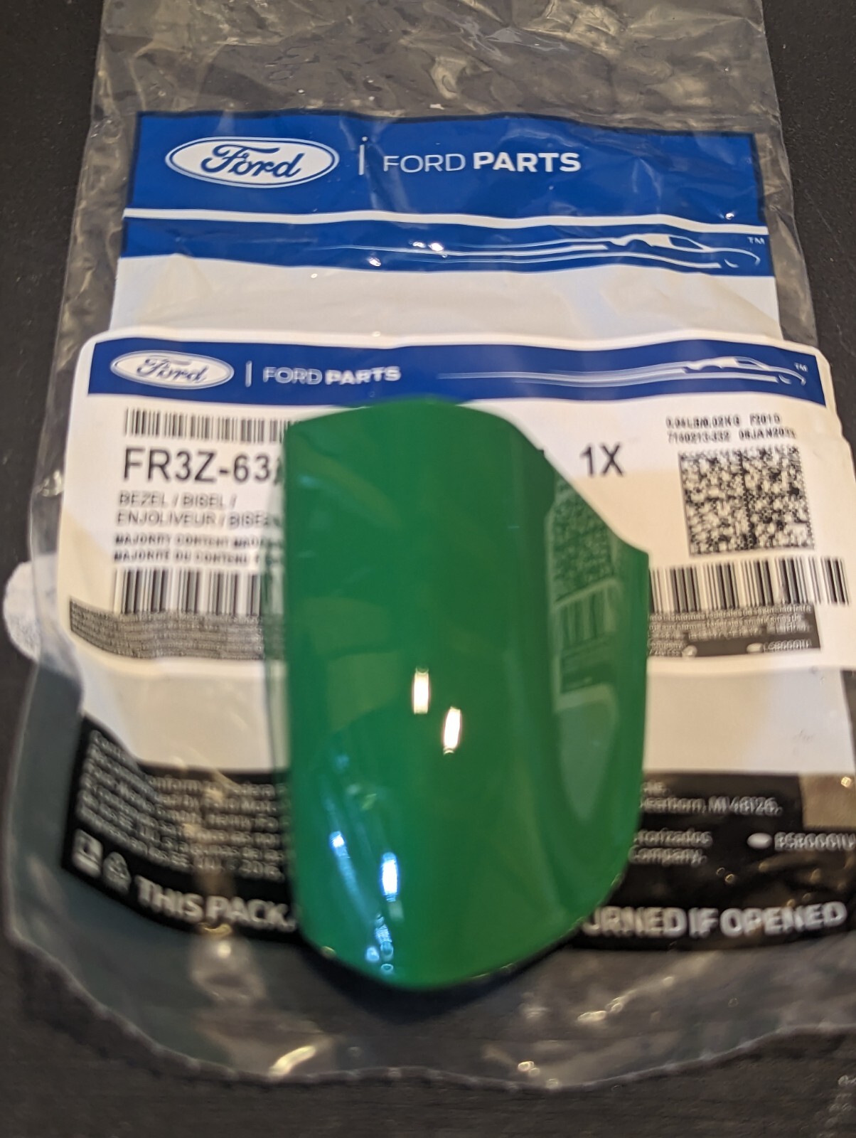2015 - 2022 Ford Mustang OEM FORD Driver Side Key Handle Cap Prepainted **Need For Green**, Paint Code **AJ**. We have ALL the factory Ford paint colors from 2015 to 2022 We are the **LARGEST** provider in the **WORLD** of this part with several **THOUSAND** **SOLD** All we do is paint Ford products and have been doing so for 20+ years right here in the **USA.** We purchase the parts unpainted, directly from FORD. All parts are painted in a state of the art Paint Booth. Parts will be delivered to you in a SEALED, FORD PARTS BAG. Proof you are purchasing the REAL DEAL FORD product. **First**: We prep the part by cleaning and sanding in preperation of being primer sealed. Primer sealer fills in the sand marks and acts as an adhesion coating guaranteeing the basecoat/clearcoat will not flake from the plastic part. **Second:** Depending on the color of the part, we will use a colored waterborne flexible primer sealer that closely matches the color of your car. **Third:** After the primer sealer has dried, we then apply basecoat and clearcoat that perfectly matches your vehicle. Our color matching ability is very good since all we do is paint Ford products. ----------------------------------------BEWARE OF COUNTERFEITS BEING SOLD------------------------------------------ There are replicas or counterfeit products being sold from China of this product. The part is NOT molded correctly and is slightly different in overall design. Because of this, the part does not align properly, nor does it "click" and lock in like the OEM Ford part does, it jiggles loosely on the vehicle. Overtime as you drive it vibrates itself loose from the wind resistance and falls off. Or if you go through a car wash, it will get ripped off instantly. You then you have no part to return and THEY WIN, you are out the $30 they are selling for. You then have to purchase AGAIN or from US. They are sneaky and have 100's of different's of seller accounts to spam listings and hide negative feedbacks. Everyday we get people warning us they wish they would have just purchased from us first. ----------------------------------------Upfront Pricing------------------------------------------ We order the part directly from Ford for roughly $15.95 unpainted. The pricing changes constantly due to supply chain demands at Ford. Each part takes roughly 1 hour to paint from A to Z. Standard bodyshop rate in USA is $75 dollars an hour NOT INCLUDING materials cost. If you were to purchase the part unpainted and bring to ANY bodyshop they are going to charge you roughly $85 to $150 depending on the color to paint this part. It takes just as long to paint a small part as it does a larger part. The setup time, and paint times in the spray booth are the same. We sell these parts directly to Ford Dealers and service shops who upsell for around $150. By purchasing from us you are getting them at 50% discount. This is why we sell so many! **We do our best to stock as many colors as we can, however due to the demand sometimes we run out.