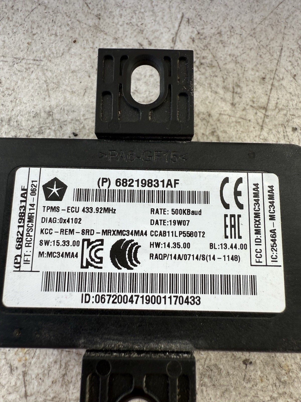 2015 - 2023 DODGE CHARGER TIRE PRESSURE CONTROL MODULE TPMS P68219831AF