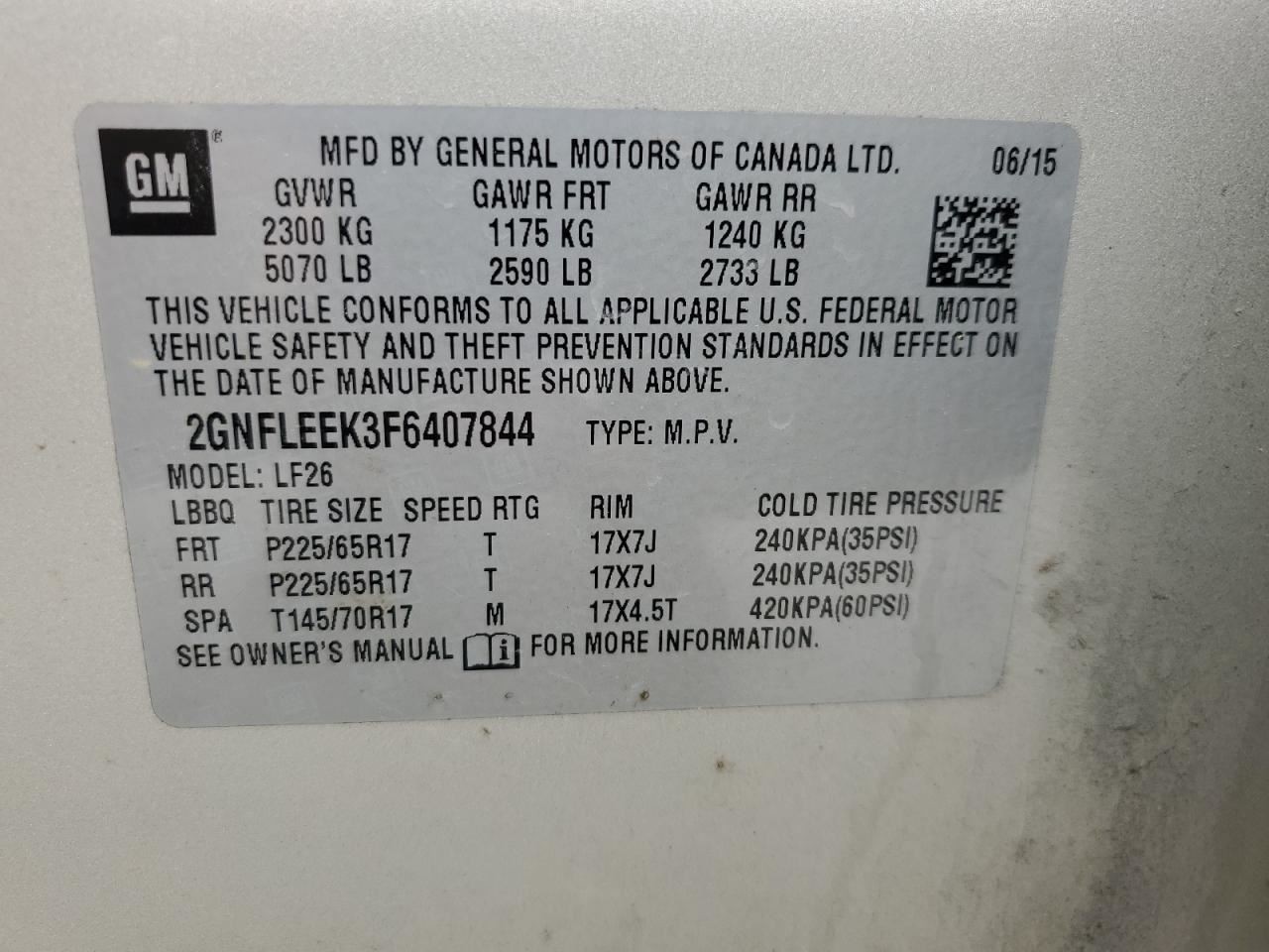 - VIN #: 2GNFLEEK3F6407844