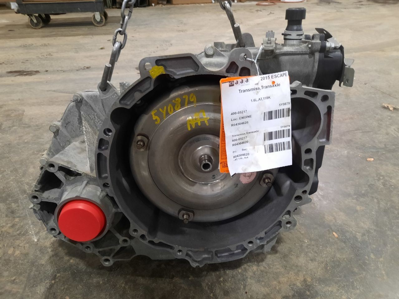 Item Description **6 MONTH WARRANTY!! 60 DAY NO HASSLE RETURNS!!** **This for a USED OEM Transmission/Transaxle Assembly pulled from a 2015 ESCAPE with 118000 actual miles on it.** **Here are our part notes about this specific part:** **1.6L,AT,118K** **Our Part #: 400-05217, 4304620** **Our Stock#: 5Y0879** Please see the fitment section below to make sure this will fit your vehicle. Pay special attention to any options listed!!! In some cases, it may only fit vehicle with certain options or specific ID#s as listed below. **ESCAPE 14 AT; 1.6L, 4x4, from 04/22/14** **ESCAPE 15-16 AT; 1.6L, 4x4** Whats Included? Whats Included? FAQ/ Help Shipping Payment Returns/Warranty #### Whats Included? ``` Here is a short description of what will generally be included with your item. If you would like more information or are unsure if something will come with your item, PLEASE ASK!! A/C Compressor: Includes the clutch/pulley assembly A/C Condenser: Sensors and hoses are not included ABS Units: Include the ATTACHED electronic module unless otherwise noted Alternator: Includes the pulley. Any brackets are not included Axle/CV shaft: Does not include the axle nut Blower Motor: Include the squirrel cage/fan blade Caliper: Includes the bracket and slides. Slides are not covered under warranty Column Switch: Includes wiring (if applicable) up to the first point it can be unplugged Control Arm: Includes the ball joint and any bushings Coolant Overflow Bottle: Cap is included Cowl Vent Panel: See Our Part notes, often sold as one side only Differential Carrier: Does not include axles Door Trim Panel: Includes handle and armrest. Does not include window/lock switches Engine: Included for convenience unless otherwise noted. These parts are not covered under warranty: Intake manifold, fuel injectors, oil pan, sensors, water pump Not included: Throttle body, Turbo, wiring harness exhaust manifold (may be left on in certain cases) Exhaust Manifold: Does not include turbo where applicable Fan Assembly: Includes motors, shroud, and blades. Fuel injectors: See our part notes Fuel Filler Door: Includes hinge. Does not include bolts/hardware Fuel Pump: Includes sending unit and any molded hoses that are non-removable Headlight: Brackets are included unless otherwise noted. HID headlights include the bulbs and ballast Hub: Includes wheel studs Ignition Coil(s): See part notes Interior Rear View Mirror: Does not included bracket glued to windshield Jack: See part notes. If noted as assembly, it will include the lug wrench Mass Airflow Sensor: Does not include housing unless pictured Power Steering Pump: Includes pulley and ATTACHED reservoir. Remote reservoirs and brackets will not be included Power Steering Gear: Includes pitman arm Rack and Pinion: Includes tie rods but they are not covered under warranty Radio: Pay special attention to our fitment description. Often times radios are more than one piece and we sell them each separately Spindle/Knuckle: Does not include hub unless noted Starter: Includes solenoid Strut: Struts are left assembled and include top plate, spring, and dust boot (dust boots on used struts are rarely in perfect shape) Stabilizer Bar: Does not include links or bushings Sunvisor: Does not include clip Taillight: Pay special attention to fitment as we list the trunk lid mounted taillights as well as the corners. Does not include bulbs Temperature Control: Includes all knobs, buttons, and sliders Throttle Body: Includes sensors but they are not covered under our warranty Transmission: Automatic transmissions include torque converters and sensors. Many newer transmissions require a relearn/programming procedure. Manual transmissions do not include any part of the clutch system. Transfer Case: Does not include electric shift motor Washer Reservoir/Bottle: Includes cap unless noted Wheel/Rim: Does not include center cap, tire, or lug nuts Window Regulator: Does not include motor unless noted (most are noted with motor) Wiper Motor: Does not include arms or transmission unless noted Wiper Transmission: Does not include motor or arms unless noted ``` FAQ/ Help #### FAQ/ Help ``` Will this fit my vehicle? Is this the right part? This is the most common question that we get. The fitment information can be confusing if you don't buy replacement parts everyday. Please contact us if you are unsure!! We try to respond to questions as quickly as possible and we are more than happy to answer any questions as best as we can. In order to speed up the process, it is very helpful, but not required, for you to send us your full VIN number along with your question. It looks like its the same color as my car, how can I tell for sure? The best way is to match the manufacturer paint code. Most of the time we include the paint code in our part notes. If you don't know what a paint code is or where yours is located, please feel free to ask. We are happy to help. I only see photos of the vehicle and not the actual part you are selling. Can you send me some? Our most recent listings include actual photos when we can provide them. If you would like an actual photo, we are more than happy to take one after the purchase for your approval before the part ships. In certain cases we will take actual photos before a purchase is made. This is on a case by case basis. Send us a message and we will let you know if it is possible for us to do so I see a wheel that says it is "B" condition, what does that mean? Grading of parts is a very subjective process but we do our best to keep it uniform. Here is a brief description of wheel grades: A Condition, A-COND = This is the highest grade used wheel. It will have very minor imperfections but will be in better condition than 90% of vehicles on the road. B Condition, B-COND = This wheel will have some cosmetic imperfections. It is in average condition for the year and mileage of the donor vehicle. It may have minor scratches and clear coat peeling. This is still a fairly nice looking, us