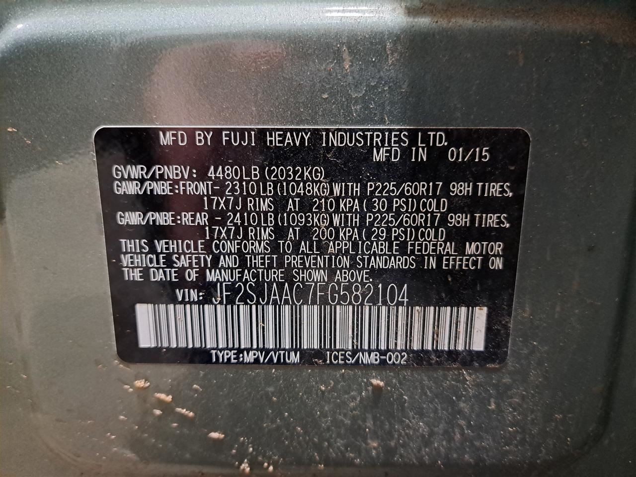 - VIN #: JF2SJAAC7FG582104