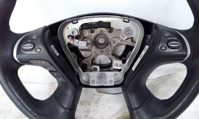 Product Title: **2015 Infiniti QX60 Steering Wheel Heated, Audio, Phone, Cruise, Information** This part will fit these makes and models with these options: Description GOOD USED PART This item is a good used part that may have scratches, blemishes, minor dents or other defects that would be consistent with a normal used part of the same year. Donor Vehicle Information ModelQX60 Year2015Mileage117000 Miles (0 = not available or unknown)Stock NumberHM0004Store Number 1Part Detail(see Help)Part GradeAPart CategoryUNotesBLK LEATHER,HTD,INFO,AUDIO,PHONE,CRU
