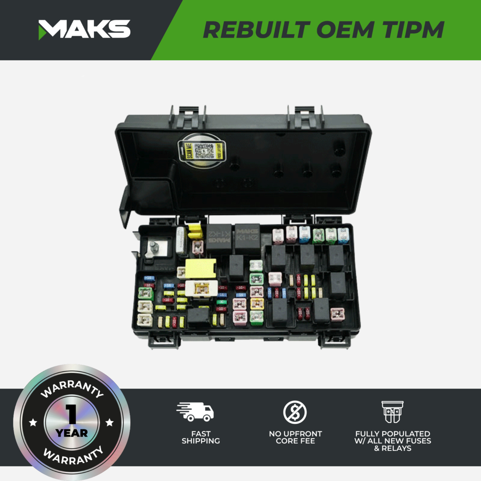 2015 Jeep Wrangler OEM Rebuilt TIPM Fuse Box 68263897 About Us Founded in 2015 by self-taught mechanic Mak Cabessa, our company began at a kitchen table with a passion for repairing and reselling automotive parts. After discovering a widespread need for reliable replacements of the Totally Integrated Power Module (TIPM) in Chrysler, Dodge, Jeep, and Ram vehicles, we focused our efforts on restoring these hard-to-find components. Since then, we’ve grown into a multi-location operation with warehouses in California and support teams in the Philippines. Today, we offer a range of rebuilt OEM parts—including TIPMs and ECMs—helping thousands of customers get back on the road with affordable, dependable solutions backed by hands-on expertise. Part Number 68263897 OEM PART NUMBER INTERCHANGEABLE PART NUMBER 68263897AA, P68263897AA, JK03253012 Fitment **This OEM TIPM / IPM fits the following vehicles:** Jeep Wrangler 2015 Table YearMakeModelEngine & Transmission2015JeepWranglerAll Model Year Variants Notes Part Number Notes ### PART NUMBER NOTES: 01 The last two alpha characters in TIPM Part Numbers refer only to the date of manufacture and are completely interchangeable with each other. 02 The presence or absence of a leading zero as the first character in the part number is not significant. It may appear on your old TIPM with or without a leading zero. 03 If your old TIPM, or one recommended by a Dealer, begins with "RL" this simply means that Chrysler had "rebuilt" your old TIPM, or that the Dealer only offers Chrysler-rebuilt TIPMs instead of the original which may no longer be available. In these cases they have merely replaced the first 2 numeric digits in the part number with "RL", meaning "rebuilt", with no actual functional difference. 04 Your old TIPM may show a "P", or "P/N" in front of the part number. This is merely a field heading on the sticker that means "Part Number" and is not significant.  INSTALLATION & TROUBLESHOOTING **Ready To Install Your TIPM / FCM / BCM?** Its easy and should only take 20 minutes. You can also save hundreds of dollars when you do it yourself! Click below to redirect to our helpful videos and documents to make this process virtually painless. Call to Action \+ GO TO INSTALLATION PAGE   Warranty  This brand-new OEM TIPM comes with a full 1-year warranty for your peace of mind. If you experience any issues with the unit within that time period, we will either repair it or provide a replacement at no additional cost. Our goal is to ensure your satisfaction and make sure your vehicle remains in top working condition. Returns  Shipping After receiving the item, contact seller within: 30 days Refund will be given as: Money back Or Exchange Return shipping: Free returns are for unused / uninstalled tipm's only Convert to Rental Option: Sometimes after you purchase a TIPM, you discover the real problem was not in the TIPM and you just needed it for troubleshooting. With TIPM Rebuilders, you may convert your purchase to a rental at any time during the first 30 days. Rental fees are charged at: Item ships directly from our facility in Chatsworth, CA USA Shipping to: Worldwide Shipping is free to customers within the United States, via Fedex Ground (1-5 days, depending on location) Expedited shipping options are available at checkout! International customers: Click on the “Shipping” Tab above and enter your country from the drop-down list to obtain international shipping rates. $12 per day, 10 day minimum for REBUILT TIPMS $18 per day, 25% purchase price minimum for NEW TIPMS TIPM REBUILDERS GENUINE OEM TOTAL INTEGRATED POWER MODULES 2015 jeep wrangler OEM Rebuilt TIPM Fuse Box 68263897 This is an OEM Tipm - fully rebuilt in our facility in Chatsworth, California! Tipm has new fuel pump relay, brand new fuses, and any other components out of spec are replaced. Tipm is also thoroughly cleaned to look new! One year warranty is included. \*\*We are now offering a service to configure your new tipm to your VIN!\*\* Avoid paying hundreds of dollars at the dealer and enjoy a seamless tipm installation! The price is $75 with this coupon to save $100 at checkout: TIPMRVC100EBAY Please make sure to send us your VIN at checkout along with your tipm order number! THIS PART FITS: 2015 Jeep Wrangler - 3.6L V6 - Gas Please feel free to message us with your entire VIN# and we can verify if this TIPM is right for your vehicle! Time Saving Tip: Your VIN# is usually printed on your proof-of-insurance wallet card. WARRANTY This rebuilt OEM TIPM comes with a 1 year warranty. We will replace or repair your TIPM if it goes bad during that time period. INSTALLATION You can install and reset your tipm yourself by watching this video, or with the instructions that come in the box! However - There are hundreds of settings in the tipm - and often times they will match your vehicle and you will be ready to roll - but sometimes some settings have to configured properly. This can cause lingering dash lights, and some functions to not work properly. Good news - We can configure the TIPM to your VIN here in our facility before shipping it to you! Please see details in the description above. . Watch Installation Video \[Here\] (https://youtu.be/XCXK6YJRbWg) SHIPPING Item ships directly from our facility in Chatsworth, CA USA Shipping to: Worldwide Shipping is free to customers within the United States, via Fedex Ground (1-5 days, depending on location) Expedited shipping options are available at checkout! International customers: Click on the “Shipping” Tab above and enter your country from the drop-down list to obtain international shipping rates. core returns made simple, no up front core fee, 30 days to return I acknowledge that if Maks Tipm Rebuilders does not receive my core (Old Tipm) within 30 days of my purchase date, a $150 fee will be charged to my original payment method. RETURNS POLICY After receiving the item, contact seller within: 30 days Refund will be given as: Money