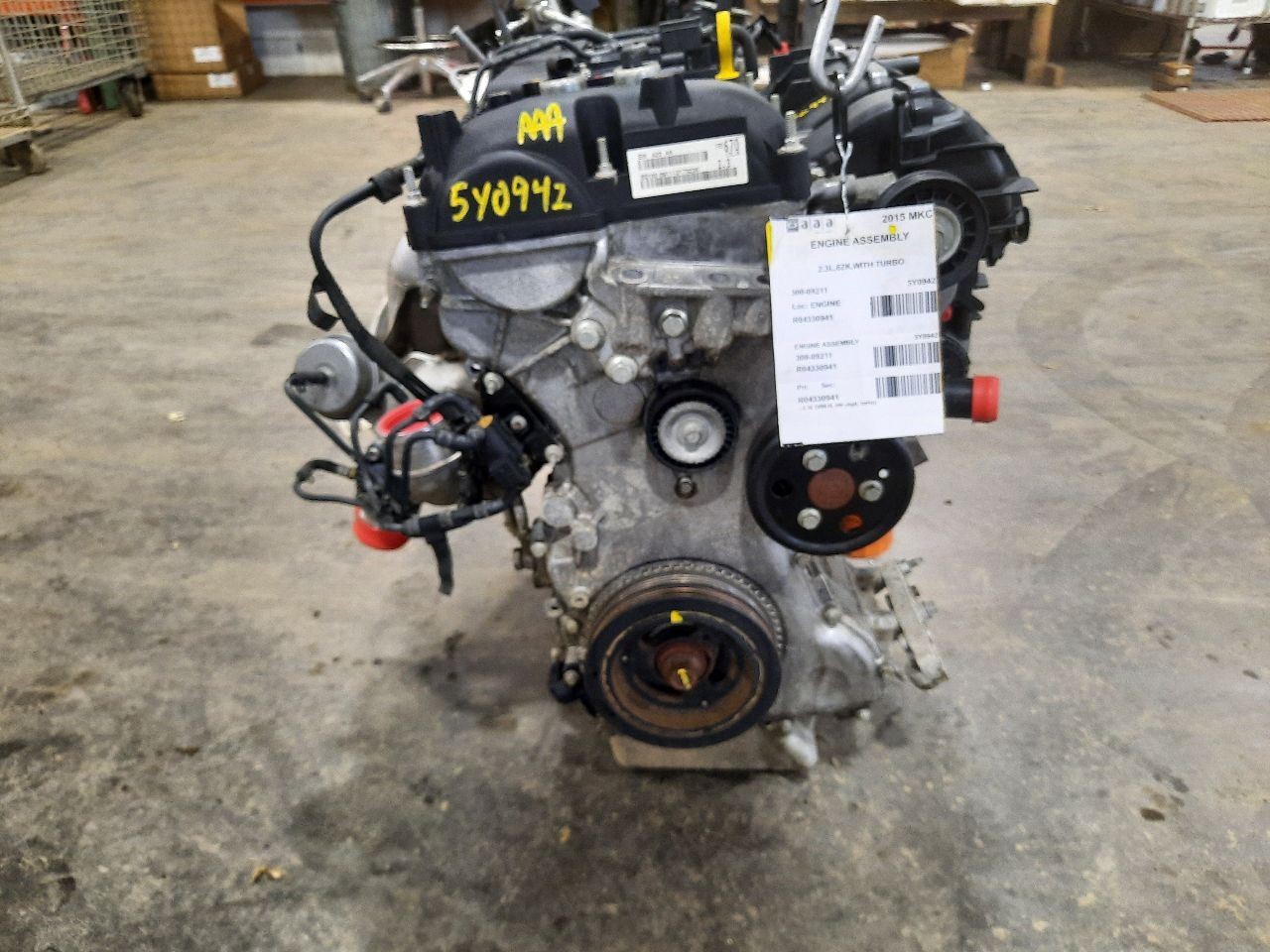 Item Description **6 MONTH WARRANTY!! 60 DAY NO HASSLE RETURNS!!** **This for a USED OEM Engine / Motor Assembly Assembly pulled from a 2015 MKC with 62000 actual miles on it.** **Here are our part notes about this specific part:** **2.3L,62K,WITH TURBO** **Our Part #: 300-09211, 4330941** **Our Stock#: 5Y0942** Please see the fitment section below to make sure this will fit your vehicle. Pay special attention to any options listed!!! In some cases, it may only fit vehicle with certain options or specific ID#s as listed below. **MKC 15-19 2.3L (VIN H, 8th digit, turbo)** Whats Included? Whats Included? FAQ/ Help Shipping Payment Returns/Warranty #### Whats Included? ``` Here is a short description of what will generally be included with your item. If you would like more information or are unsure if something will come with your item, PLEASE ASK!! A/C Compressor: Includes the clutch/pulley assembly A/C Condenser: Sensors and hoses are not included ABS Units: Include the ATTACHED electronic module unless otherwise noted Alternator: Includes the pulley. Any brackets are not included Axle/CV shaft: Does not include the axle nut Blower Motor: Include the squirrel cage/fan blade Caliper: Includes the bracket and slides. Slides are not covered under warranty Column Switch: Includes wiring (if applicable) up to the first point it can be unplugged Control Arm: Includes the ball joint and any bushings Coolant Overflow Bottle: Cap is included Cowl Vent Panel: See Our Part notes, often sold as one side only Differential Carrier: Does not include axles Door Trim Panel: Includes handle and armrest. Does not include window/lock switches Engine: Included for convenience unless otherwise noted. These parts are not covered under warranty: Intake manifold, fuel injectors, oil pan, sensors, water pump Not included: Throttle body, Turbo, wiring harness exhaust manifold (may be left on in certain cases) Exhaust Manifold: Does not include turbo where applicable Fan Assembly: Includes motors, shroud, and blades. Fuel injectors: See our part notes Fuel Filler Door: Includes hinge. Does not include bolts/hardware Fuel Pump: Includes sending unit and any molded hoses that are non-removable Headlight: Brackets are included unless otherwise noted. HID headlights include the bulbs and ballast Hub: Includes wheel studs Ignition Coil(s): See part notes Interior Rear View Mirror: Does not included bracket glued to windshield Jack: See part notes. If noted as assembly, it will include the lug wrench Mass Airflow Sensor: Does not include housing unless pictured Power Steering Pump: Includes pulley and ATTACHED reservoir. Remote reservoirs and brackets will not be included Power Steering Gear: Includes pitman arm Rack and Pinion: Includes tie rods but they are not covered under warranty Radio: Pay special attention to our fitment description. Often times radios are more than one piece and we sell them each separately Spindle/Knuckle: Does not include hub unless noted Starter: Includes solenoid Strut: Struts are left assembled and include top plate, spring, and dust boot (dust boots on used struts are rarely in perfect shape) Stabilizer Bar: Does not include links or bushings Sunvisor: Does not include clip Taillight: Pay special attention to fitment as we list the trunk lid mounted taillights as well as the corners. Does not include bulbs Temperature Control: Includes all knobs, buttons, and sliders Throttle Body: Includes sensors but they are not covered under our warranty Transmission: Automatic transmissions include torque converters and sensors. Many newer transmissions require a relearn/programming procedure. Manual transmissions do not include any part of the clutch system. Transfer Case: Does not include electric shift motor Washer Reservoir/Bottle: Includes cap unless noted Wheel/Rim: Does not include center cap, tire, or lug nuts Window Regulator: Does not include motor unless noted (most are noted with motor) Wiper Motor: Does not include arms or transmission unless noted Wiper Transmission: Does not include motor or arms unless noted ``` FAQ/ Help #### FAQ/ Help ``` Will this fit my vehicle? Is this the right part? This is the most common question that we get. The fitment information can be confusing if you don't buy replacement parts everyday. Please contact us if you are unsure!! We try to respond to questions as quickly as possible and we are more than happy to answer any questions as best as we can. In order to speed up the process, it is very helpful, but not required, for you to send us your full VIN number along with your question. It looks like its the same color as my car, how can I tell for sure? The best way is to match the manufacturer paint code. Most of the time we include the paint code in our part notes. If you don't know what a paint code is or where yours is located, please feel free to ask. We are happy to help. I only see photos of the vehicle and not the actual part you are selling. Can you send me some? Our most recent listings include actual photos when we can provide them. If you would like an actual photo, we are more than happy to take one after the purchase for your approval before the part ships. In certain cases we will take actual photos before a purchase is made. This is on a case by case basis. Send us a message and we will let you know if it is possible for us to do so I see a wheel that says it is "B" condition, what does that mean? Grading of parts is a very subjective process but we do our best to keep it uniform. Here is a brief description of wheel grades: A Condition, A-COND = This is the highest grade used wheel. It will have very minor imperfections but will be in better condition than 90% of vehicles on the road. B Condition, B-COND = This wheel will have some cosmetic imperfections. It is in average condition for the year and mileage of the donor vehicle. It may have minor scratches and clear coat peeling. This is still a fairly nice looking, used wheel C Condition, C-C
