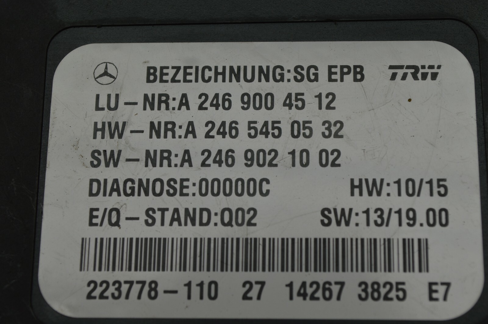 **2015 W165 MERCEDES BENZ ML350 ELECTRONIC PARKING BRAKE CONTROL MODULE.** **2469004512** **WORKS GREAT.** **Fitment is the responsibility of the buyer. Please use the information provided to make sure this part fits your vehicle. Item must be returned in the same original condition. Returns due to our error will receive a full refund. All other returns will incur a 20% restocking fee and buyer will pay original and return shipping. Warranty on electronic devices is void if identifying mark is removed or has sign of tampering.** **Feedback:** **If your item doesn't meet our description or your expectations, please let us know before leaving your feedback. We are always willing to work out any problems.** **Please visit our store to view our other items.**