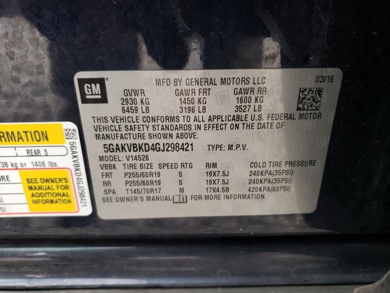- VIN #: 5GAKVBKD4GJ298421