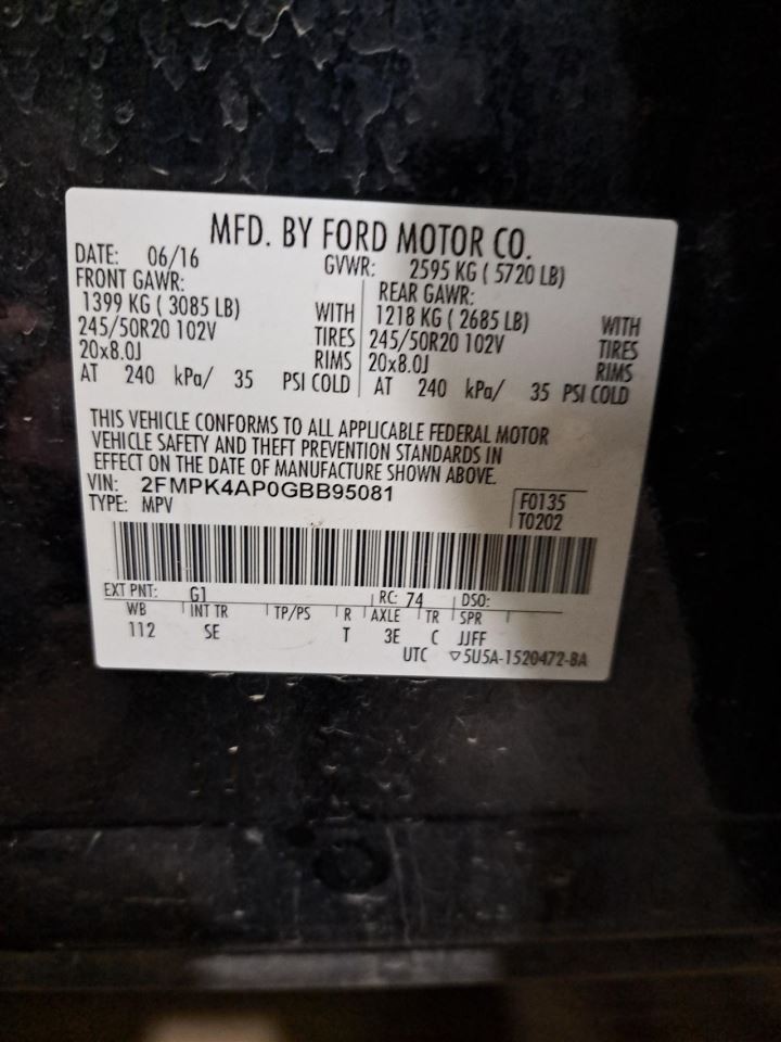 - VIN #: 2FMPK4AP0GBB95081