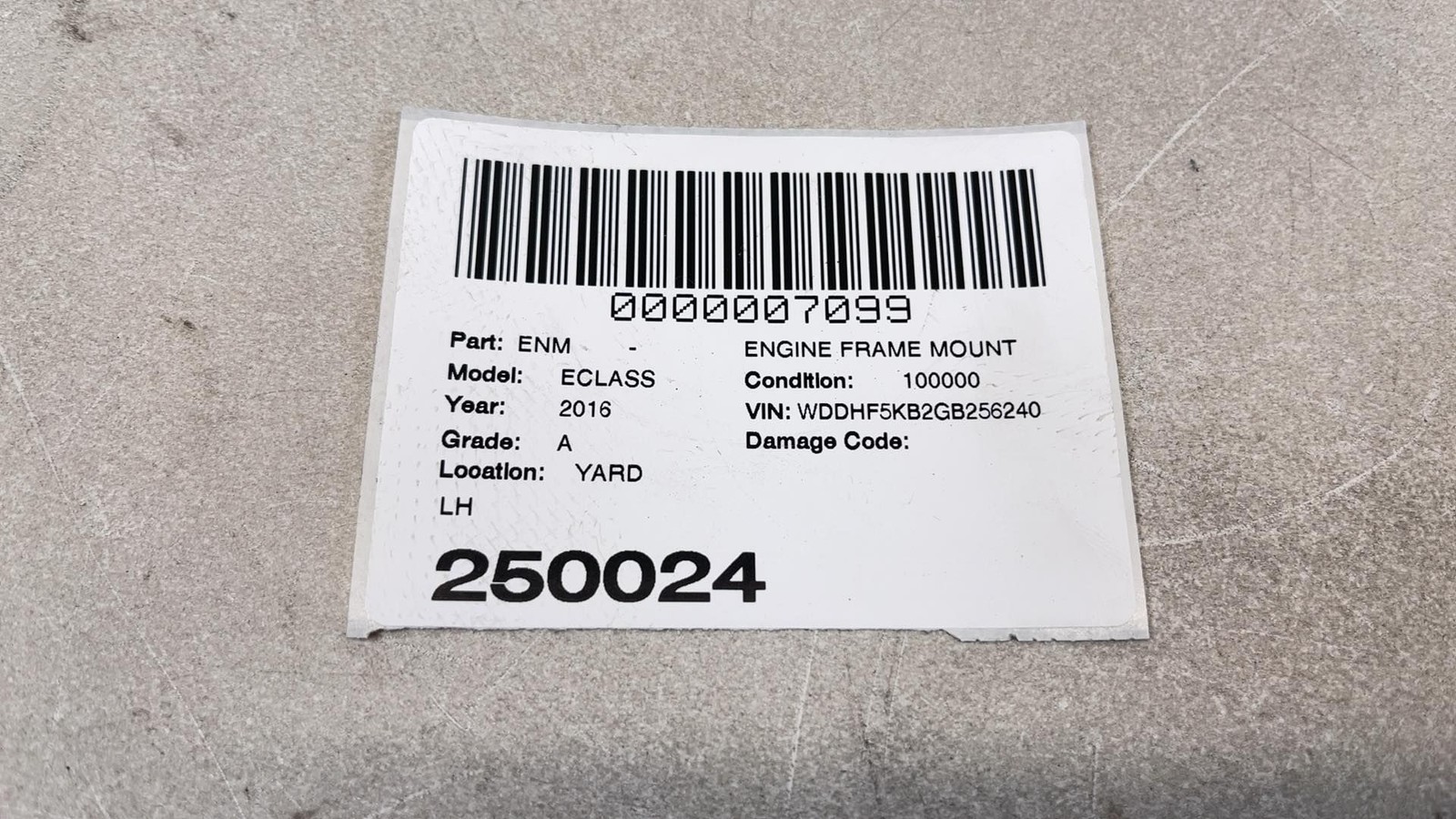 2016 MERCEDES E-CLASS Engine Frame Mount Lh OEM