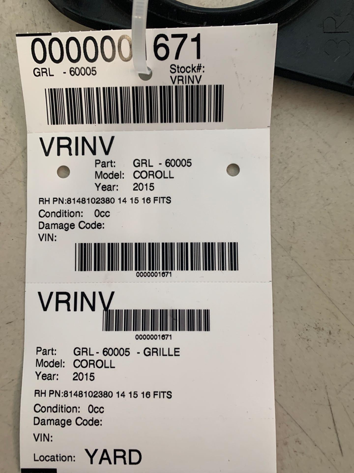 ✅ 2016 TOYOTA COROLLA FOG LIGHT COVER BEZEL RH PN:8148102380 OEM