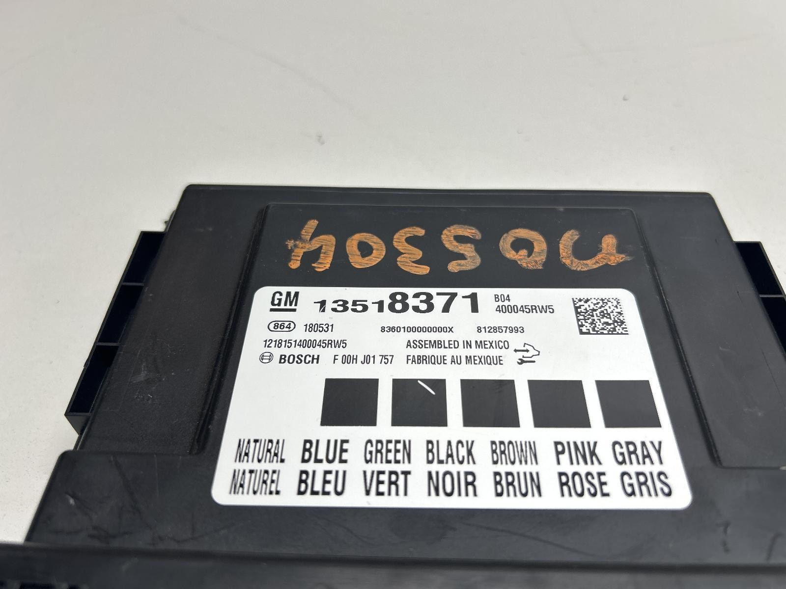 ST JAMES [](https://www.youtube.com/watch?v=3ostOVAKvTY)  Also fits 2017 Acadia; 2017-2020 Bolt, CT6; 2017-2018 Camaro, Cruze, LaCrosse, Malibu; 2018-2020 Regal; 2017 XT5. Please note this item is used and may have some wear. \*PLEASE CONTACT US TO GUARANTEE FIT\* Message or call us for extended warranty details and pricing, additional information, or any questions you have on the item! - Each Chassis Brain Box is quality checked by our experienced dismantle technicians and mechanics before they are priced and listed. Problems encountered will be covered by our warranty, and all damages will be pictured or noted on the listing. - We ship to the lower 48 states, No Alaska, Hawaii, APO/FPO, or PO boxes. We ship all items UPS or freight. All freight items must be inspected by purchaser before signing for item. If for some reason there is an issue, please do not accept and be sure to note to delivery driver. Freight items must be shipped to an address with a loading dock or forklift, residential delivery with a lift gate will be an extra $150 for freight. Customer pickup is always welcome. Message us with any questions! - Our warranty doesn't cover ordering an incorrect part, buyer will be responsible for return shipping and 20% restocking fee. Always double check compatibility! SPECIFICATION **PARTS COMMENTS** 000 BODY CONTROL **ITEM DETAILS** **Make / Model:** CHEVROLET COLORADO **Year:** 2018 **Stock Number:** N05304 **VIN:** 1GCGTDEN6J1318220 **Odometer:** 82001 Miles **Color:** White **Tag Number:** 0001701244 **PART ALSO FITS** REGAL2018 \- 2020Body Control (BCM); (LH dash) CAMARO2017 \- 2018Body Control (BCM); (LH Dash) MALIBU2017 \- 2017Body Control (BCM); (cowl) MALIBU2018 \- 2018Body Control (BCM); cowl mounted (body control) COLORADO2017 \- 2019Body Control (BCM); (LH kick panel) CANYON2017 \- 2019Body Control (BCM); (LH kick panel) LACROSSE2017 \- 2018Body Control (BCM); (LH kick panel), body control ACADIA2017 \- 2017Body Control (BCM); VIN Z (11th digit), main module, (LH dash) CRUZE2017 \- 2018Body Control (BCM); (LH kick panel) CT62018 \- 2020Body Control (BCM); (LH side of dash) CT62017 \- 2017Body Control (BCM); (LH side of dash), ID 13594614 XT52017 \- 2017Body Control (BCM); (LH kick panel) BOLT2017 \- 2020Body Control (BCM); (cowl)        ABOUT US PROMOTIONS SHIPPING FAQ WARRANTY RETURNS ABOUT US #### ABOUT US We are a family and locally owned and operated salvage yard, located in St. James, Missouri, off Historic US Route 66. We specialize in late model cars, trucks, and SUV's. With over 200,000 sq ft of climate-controlled storage and 60 acres of vehicles across 3 locations, we will most likely have what you need. We buy vehicles, inventory them, dismantle them in our in house 6 bay dismantle shop, clean, wrap, and store the parts in our temperature controlled warehouse. Every measure is taken to ensure the parts are of the highest quality and in the condition described or better upon receipt. We try to ensure each customer has the best experience possible, handling any problems in a timely and efficient manner. We would love to do business with you! The St. James Auto & Truck Parts Mission Statement: St. James Auto & Truck Parts is an automotive recycler that provides quality parts in a timely manner with no surprises on delivery. The St. James Auto & Truck Parts family utilizes our knowledge and commitment to help our customers be completely satisfied with their buying experience. Consistently delivers outstanding customer service. PROMOTIONS #### PROMOTIONS Here at St. James Auto & Truck Parts, we want our buyers to get a good deal. That's why we run promotions on a wide vareity of items. Our promotions will range from free freight to percentage off sale price discounts. View our promotions here: SHIPPING FAQ #### SHIPPING FAQ WE VERIFY THE FIT ON ALL OUR DRIVE TRAIN AND FREIGHT ITEMS BEFORE WE SHIP OUT SO WE KNOW OUR BUYERS ARE GETTING WHAT THEY NEED. We ship to the lower 48 states, No Alaska, Hawaii, APO/FPO, or PO boxes. We ship all items UPS or freight. Freight items must be shipped to an address with a loading dock or forklift, residential delivery with a lift gate will be an extra $150 for freight. Customer pickup is always welcome (and FREE). Message us with any questions! All orders placed after 1pm EST will begin being processed by the next business day. Please refer to our current handling time under the Shipping, Returns and Payments section on the listing for when the item will be shipped out. Our facility is closed on weekends and holidays. WARRANTY #### WARRANTY If you encounter an issue, contact your Sales Representative BEFORE you remove the part from your vehicle. If there is a mechanical issue, we will only warranty the part if we are notified BEFORE you repair or remove it. We hold the right to refuse the warranty claim due to mis-installation or mis-diagnoses. We also hold the right to send a inspector for any Diagnosing. Our warranty is only good for STOCK Applications! If your vehicle has been modified in any way then the warranty is VOID. All our products are for STOCK Applications unless noted otherwise on our invoice. Regarding engines, accessories such as alternators, starters, water pump, intake and exhaust manifolds, fuel injectors, carburetor, flywheel, brackets, oil pressure switches, thermostats, smog emission devices, turbos, high pressure oil pumps, injector pumps, and timing belts are complimentary and do not necessarily come with the engine. These parts are also not covered under the St. James Auto & Truck Parts Warranty limited warranty, and we do not guarantee interchangeability of these items. At the time of installation, and in order to maintain coverage under the warranty, it is required that the installer will do the Following: St. James Auto & Truck Parts is a Gold Seal Certified Automotive Recycler. Gold Seal recyclers set the standard for quality, customer service, and warranties. St. James Auto & Truck Parts adheres to the