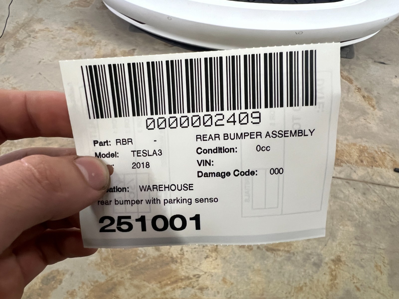 2017-2023 TESLA MODEL 3 REAR BUMPER ASSY W/ BRACKETS /PARK SENSOR COLOR-PPSW OEM