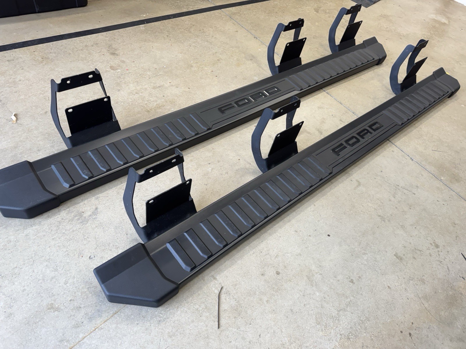 **Taken off a truck with 90 miles on it. Basically brand new and no scratches or dents.** **The 2017-2026 Ford F250 F350 Running Boards Super Duty Black side steps Crew cab OEM are genuine Ford parts designed specifically for the Super Duty trucks. These black running boards are a set of two pieces, one for the left and one for the right side of the vehicle. They are fixed in place and come with the OE/OEM part numbers NC3J-16450-AA5YZ9 and NC3J-16451-AA5YZ9. These OEM running boards offer a sleek and durable option for enhancing the exterior of your Ford truck while providing easy access to the cab.**