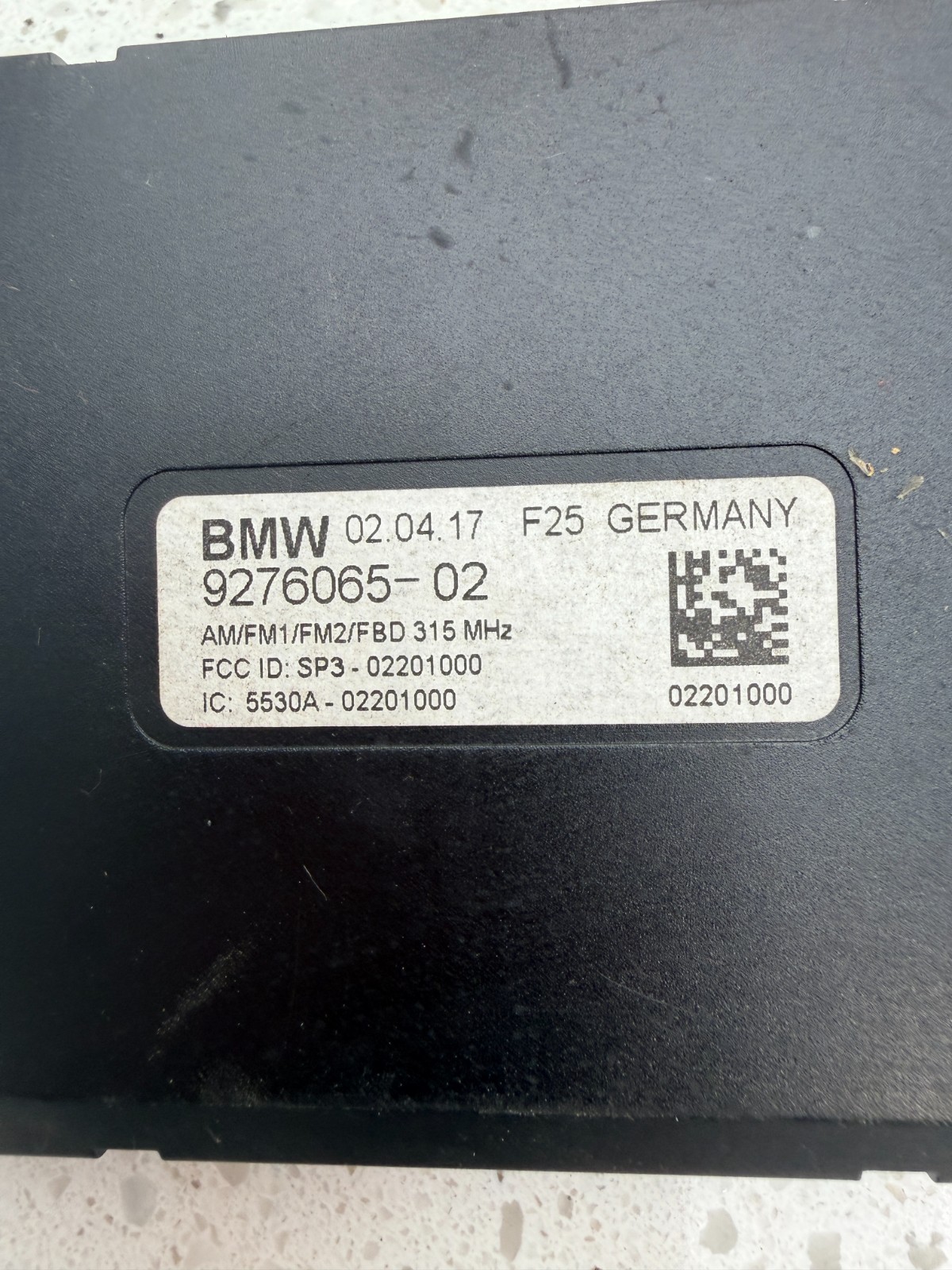 The product is a stereo radio antenna diversity control module specifically designed for a 2017 BMW X3 (F25) model. Manufactured by BMW, the part number is 9276065, and it is an original equipment manufacturer (OEM) product. This module is essential for controlling the diversity of the stereo radio signal and ensuring optimal performance in the vehicle. It is a reliable and high-quality part that is essential for maintaining the functionality of the car's audio system. Item as shown in the listing pictures.