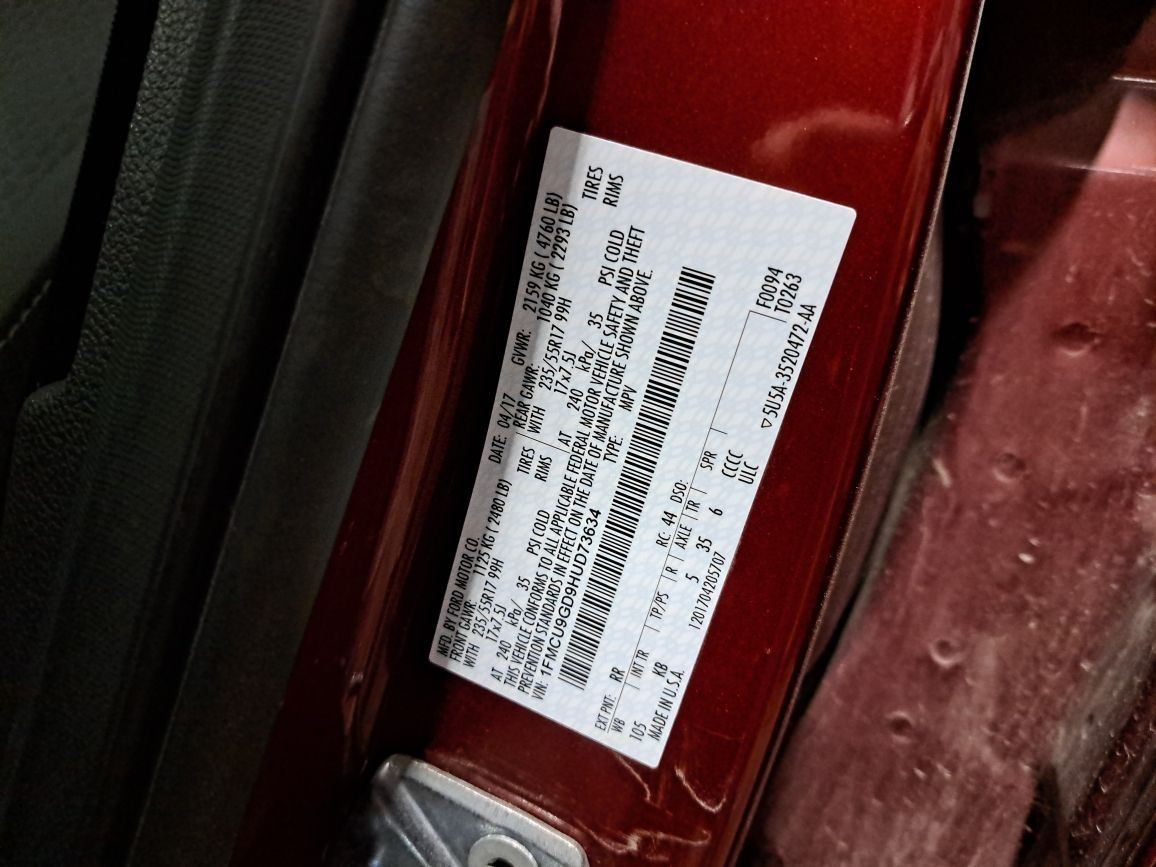 - VIN #: 1FMCU9GD9HUD73634