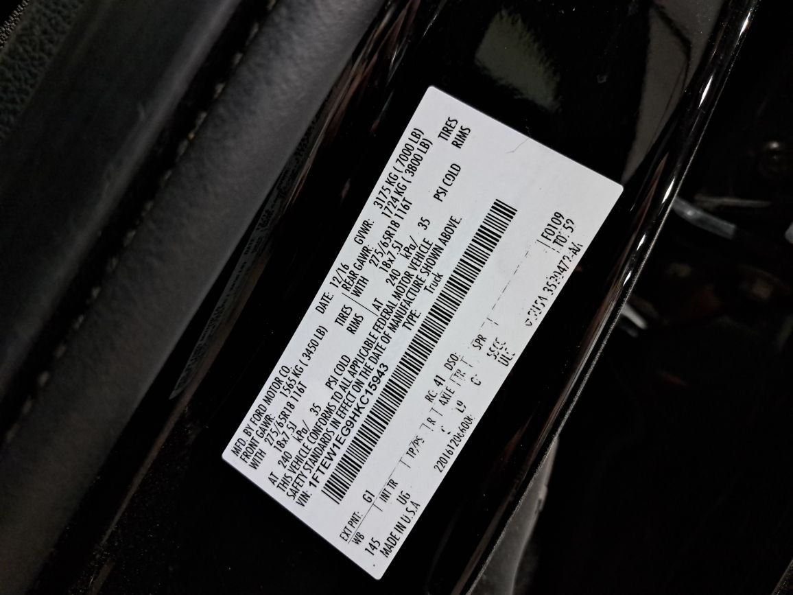 - VIN #: 1FTEW1EG9HKC15943