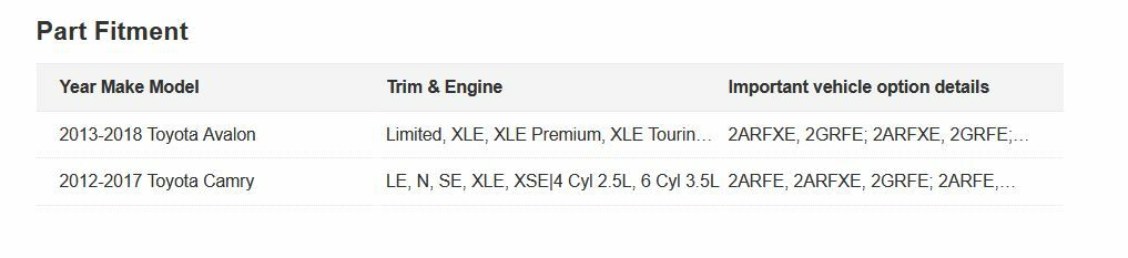 Part: Accelerator Gas Pedal Pulled from: 2017 Toyota Camry. Condition: Used Condition, Good, Exactly as pictured. Pictures of actual part. Part Number: 78110-06040 Fitment: fits Toyota Camry, Toyota Avalon, See image 2 for fitment. Please use the part number, pictures and description** **provided to make sure this part fits your vehicle.** - **We do not guarantee color matching unless we match the color code that you provide to our vehicle.** - **Buyer is responsible for payment of return shipping.** - **On listings with Free Shipping, we will deduct the original shipping cost paid by us, when submitting a refund to you.** - **Shipping charge is non-refundable.** - **20% restocking fee of the purchase price will be charged on all returned parts except for defective or not as described items.** - **No returns accepted on International shipments** **Payment** - **Paypal** - **Credit Cards – All major credit cards; VISA, Mastercard, American Express, Discover** **Local** - **State of Nebraska Residents subject to 7.25% sales tax.** **Thank** **You for your interest in our listing. If you are not satisfied for any** **reason, please contact us before submitting feedback and we will do our** **best to resolve the issue and make sure you are 100% satisfied with your** **purchase.**