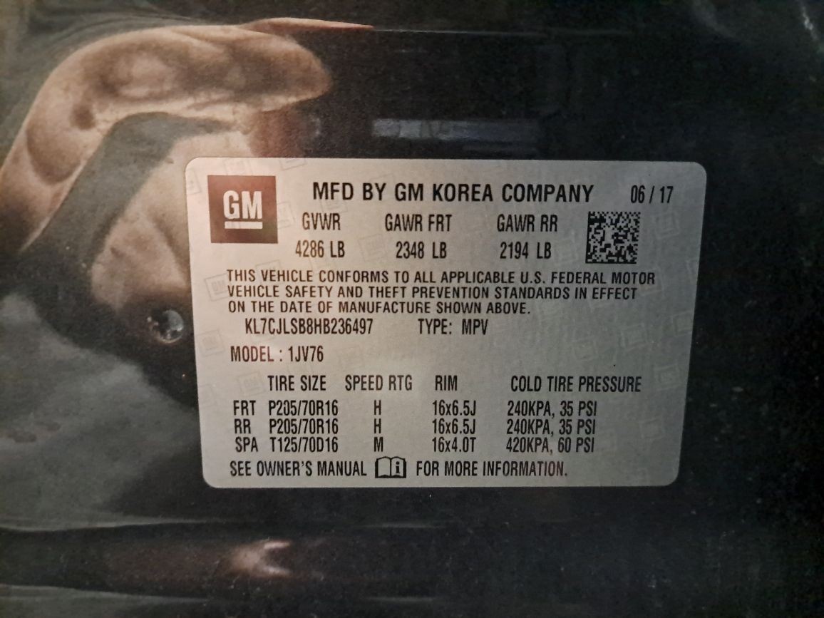 - Donor VIN: KL7CJLSB8HB236497