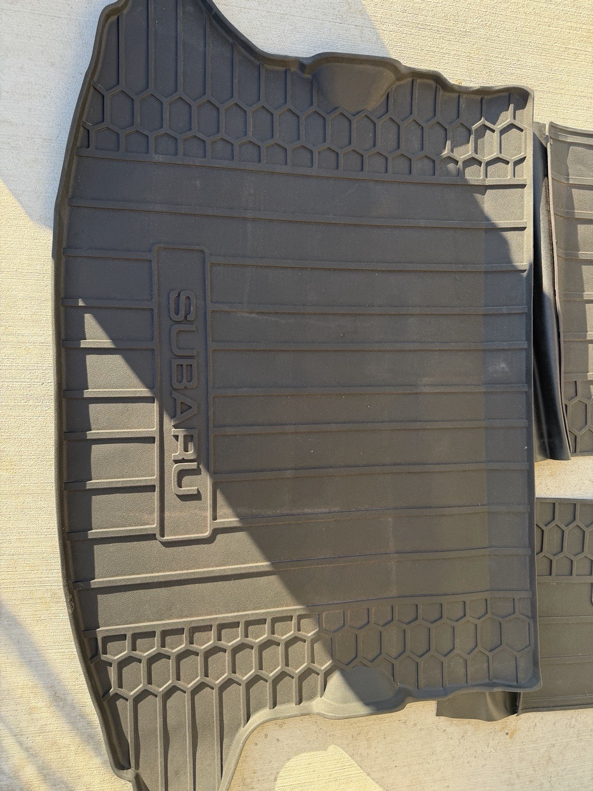 The 2018-21 Crosstrek Trunk All Weather Mat Cargo Liner Rear Seat Protector is a durable and practical accessory designed specifically for the rear of your vehicle. Made by the brand All Weather, this cargo liner provides protection for your rear seat and trunk area from dirt, spills, and damage. Its all-weather design ensures that it will hold up to the elements, keeping your vehicle looking like new. Perfect for keeping your car clean and organized during all types of trips, this cargo liner is a must-have for any driver. In great condition will come as shown in pictures