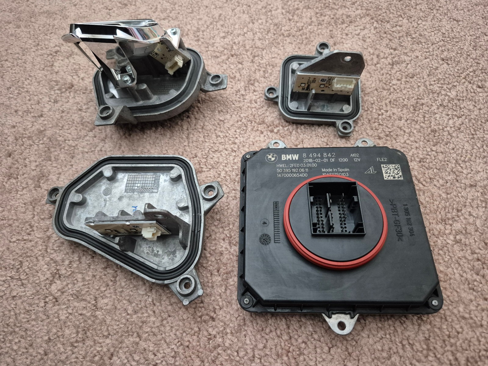 Listed is a LEFT side LED control module set taken off of a 2019 BMW X2 headlight LED type Modules are in USED condition. (See pictures.)