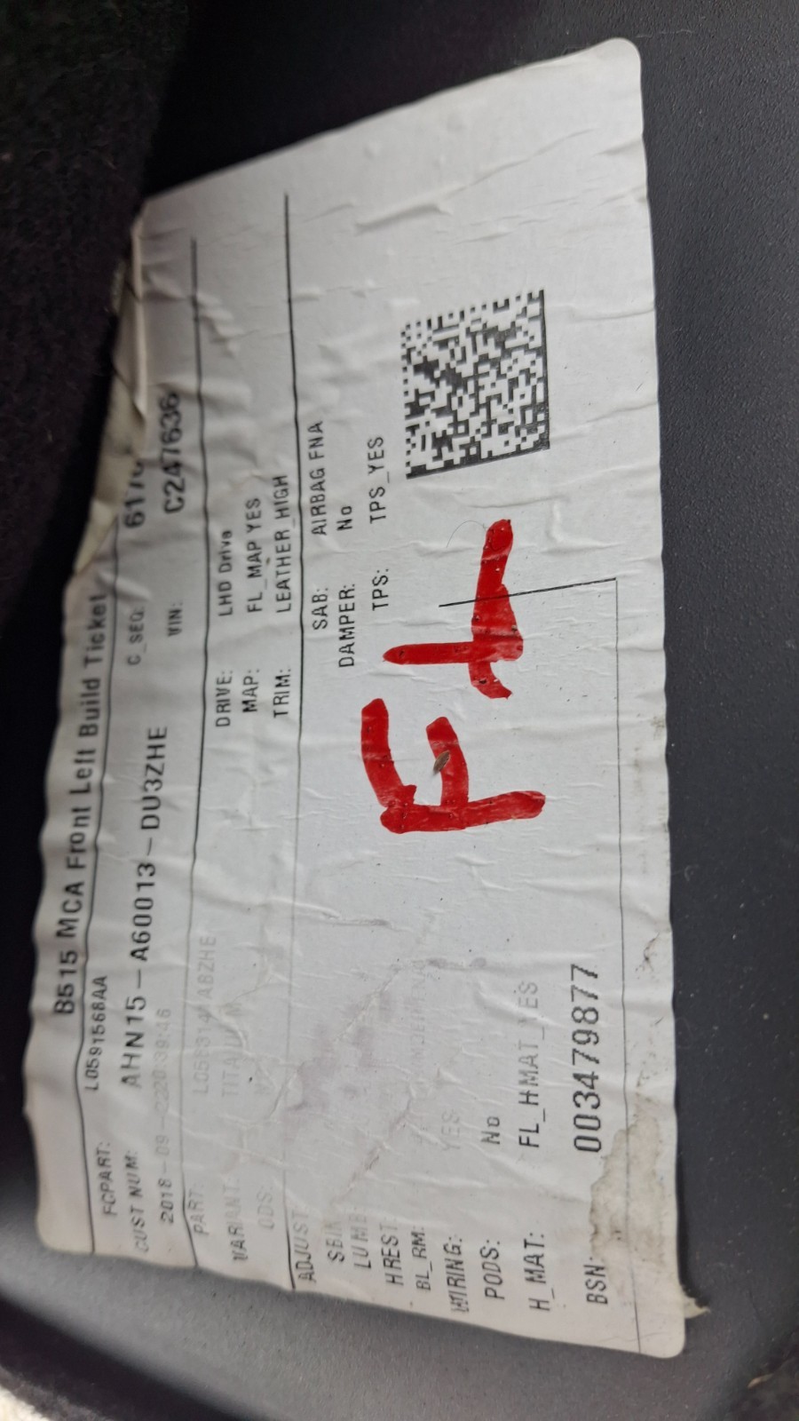 2018-2021 FORD ECOSPORT FRONT LEFT DRIVER SIDE UPPER SEAT BACKREST CUSHION OEM