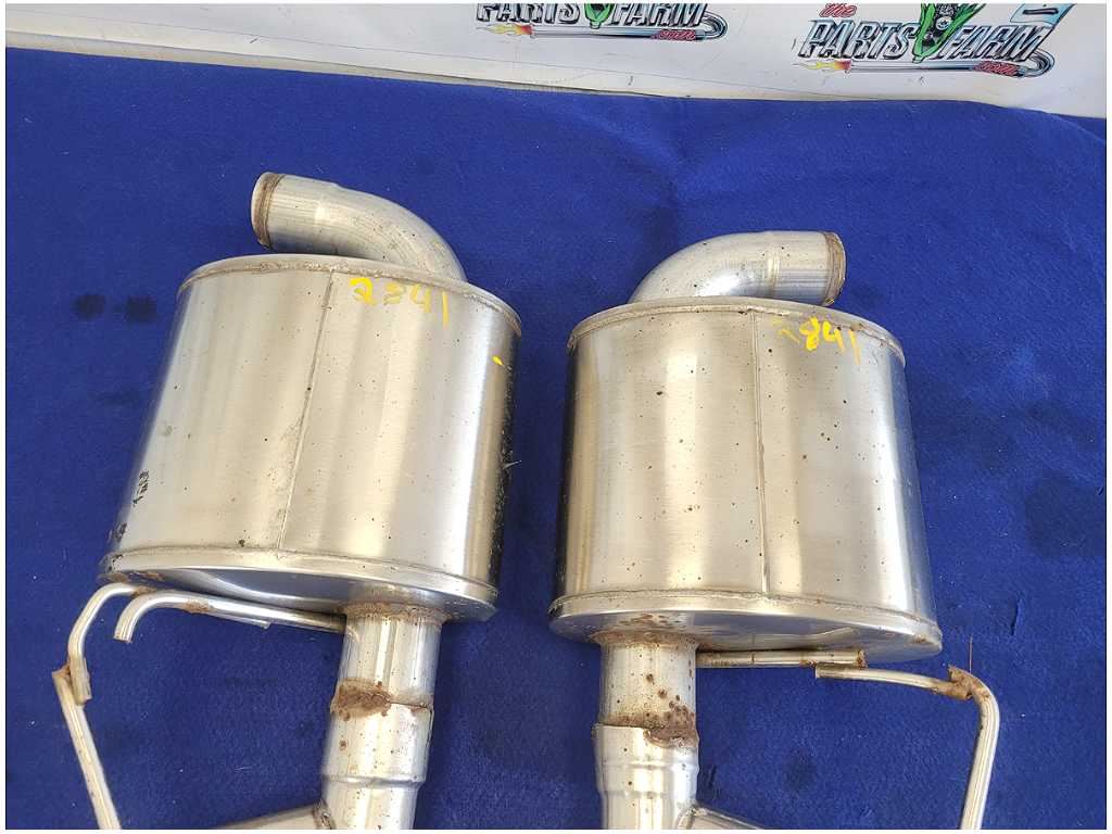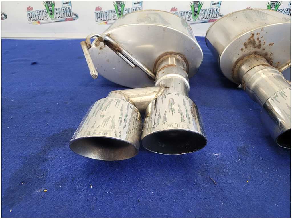 The Parts Farm The Parts Farm proudly presents this **2018-2023 Ford Mustang GT Pair Aftermarket Mufflers Quad Tip Exhaust \*Read\* 2841** available for purchase **Pair of Aftermarket Mufflers with Corsa Quad Tips Welded On that was removed from a Performance Pack 2017 Ford Mustang GT S550 with 58k miles.** **Has some Dents and Scratches!! Corsa Tips have Been Welded On!!!** **We do not warranty the color or the finish.** **Make sure you verify the part numbers.** **Please view all pictures before purchasing.** **This Ford Mustang GT Coupe had a manual transmission with paint code H3 and axle code BB 3.73.** **Check us out on social media!** **Instagram: @thepartsfarm** **Facebook: The Parts Farm** **The Parts Farm** **1572 Ross Bowen Rd** **Lyons Ga 30436** **SEE PICS AT BOTTOM FOR EXACT CONDITION!** **Call The TPF Hotline for more MUSTANG AND CAMARO awesome car parts!** \-\-\---------------------- PAYPAL OR CREDIT CARD ONLY PLEASE. ITEM SHIPPED WITH IN 2 BUSINESS DAYS ITEM INSURED FOR BUY IT NOW PRICE. All drivetrain (engines, transmission, rear axles, etc) carry a 3 month/3,000 mile warranty unless otherwise stated. The 3 month period starts when you take possession of the part. We do not cover the expenses of reprogramming,or any labor costs unless a labor warranty is purchased at the time of checkout. In the event a part sold with a warranty fails to operate within the warranty period we will replace the part(s) with a functionally equivalent part or refund the part purchase price, at our option. No refund on deposits or unwanted special order parts or special "cut" items. Original shipping charges and return shipping charges are not refunded. You have 14 days to return a part for any reason other than failure, to process the return you must contact us within the 14 day period to obtain a RMA number (return material authorization). Once you obtain an RMA number, ship the item back to The Parts Farm, 1572 Ross Bowen Rd. Lyons, GA 30436 along with the RMA number. \_\_\_\_\_\_\_ADDITIONAL INSTRUCTIONS Orders placed and paid for after 12pm eastern time will be processed the following BUSINESS day. We are closed Saturday, Sunday, and all major holidays. You must obtain a freight quote before you can checkout and make payment on ALL freight orders! Thank you! - Team TPF \_\_\_\_\_\_\_IMPORTANT FREIGHT INFORMATION\_\_\_\_\_\_\_ !!!!!! PLEASE INSPECT ALL FREIGHT BEFORE ACCEPTING DELIVERY !!!!!!! !!!!!! IF YOU SIGN AND IT IS DAMAGED IT IS YOURS !!!!!! \[ Due to the nature of the purchase, there are no refunds on engines, engine kits, transmission kits, transmissions, or other engine/trans related special order kits..