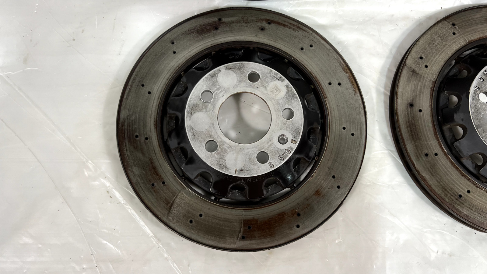 Enhance the braking system of your Audi RS5 Sportback with this OEM Front 375mm & Rear 330mm Drilled Brake SET. The set includes two disc brake rotors that are compatible with the left, right, driver, or passenger side of the vehicle. The Audi brand ensures quality and reliability, making this set a great choice for car enthusiasts. The part type is a disc brake rotor, and the year of manufacture is 2019. The interchange part number is 4M0615301AM, and the manufacturer part number is 8w0615601g, 4M0615.301AM. The VIN is WUABWCF53KA903707, and the placement on the vehicle is left, front, right, or driver or passenger side. Upgrade the braking system of your Audi RS5 Sportback with this high-quality set.