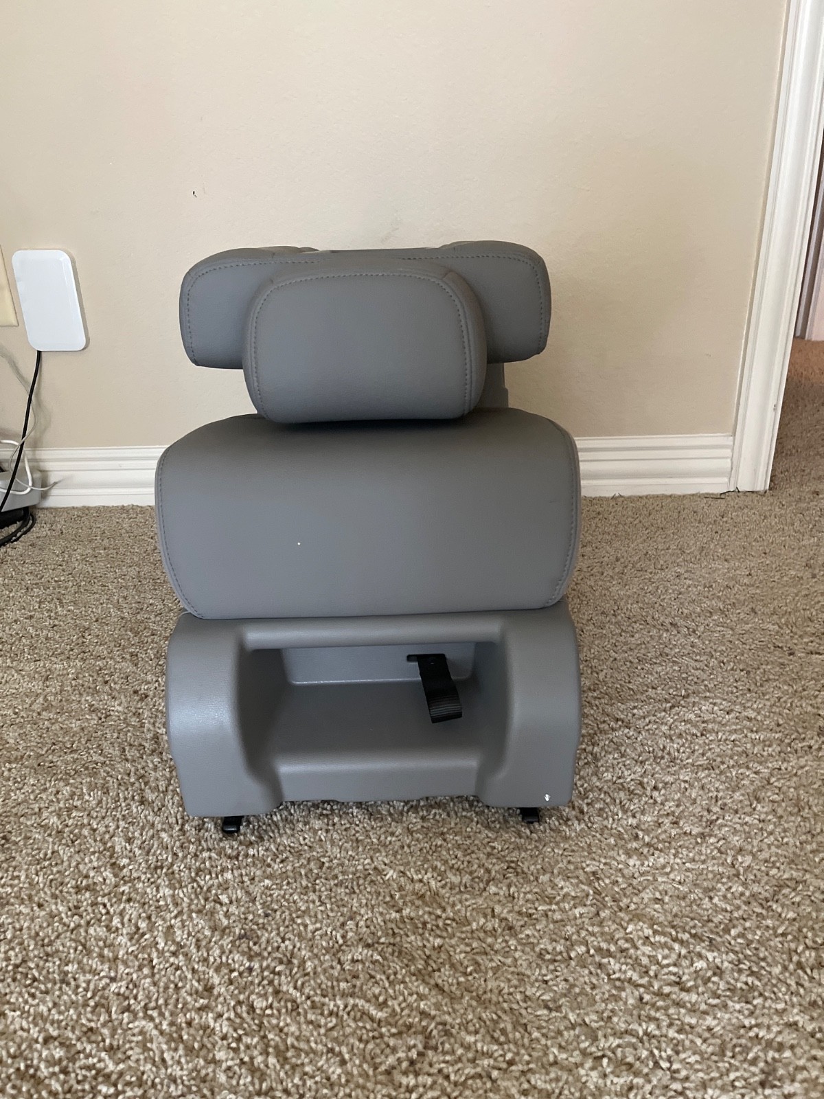 The product is a 2018-2024 Honda Odyssey middle seat jump seat in light gray leather. This additional seat is designed to be placed in the second row center of the vehicle. It features a reclining seat, adjustable headrest, bucket seat, and adjustable seat, providing maximum comfort and customization for the passengers. Made of high-quality leather material, this seat adds a touch of luxury to the interior of the Honda Odyssey.