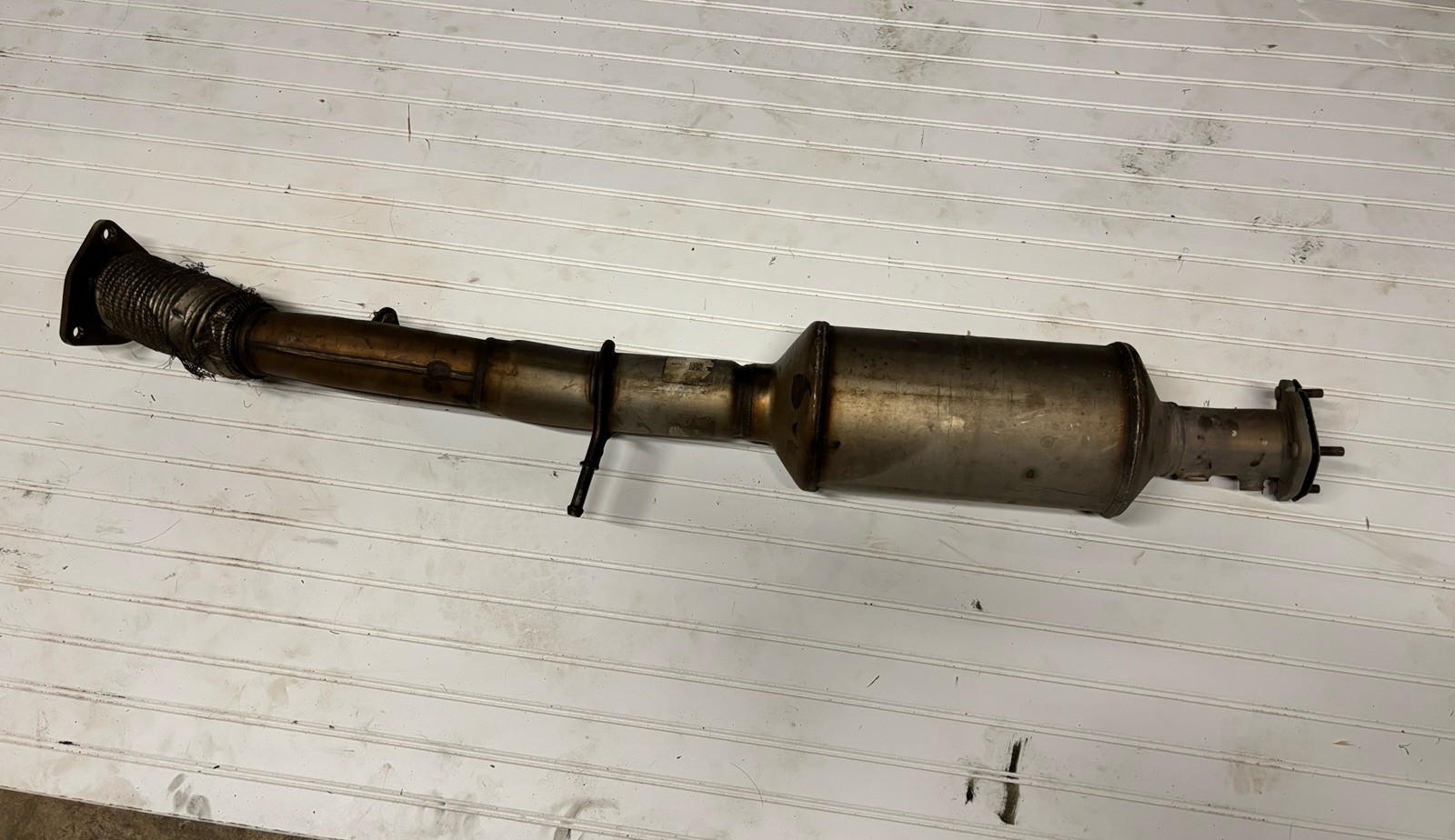 2018 GMC CANYON DURAMAX DIESEL EXHAUST CAT. \*\*\*\*DAMAGED\*\*\*\* Flex pipe part(has rip and dents only in the flex part SEE PICS) DONOR VEHICLE: 2018 CANYON SLT DURAMAX WITH 80K miles Cat itself is in good working condition. CA compliant FREE FAST SHIPPING