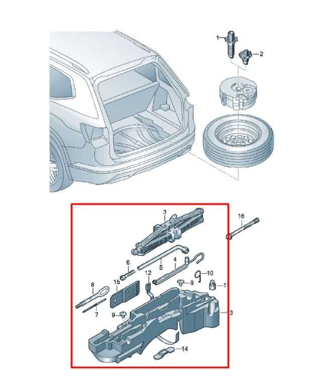 2018-23 Volkswagen Atlas S 3.6L Lift Jack and Tool Kit w/ Tools Holder Container