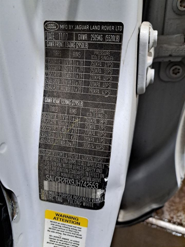 - VIN #: SALCR2RX9JH742553