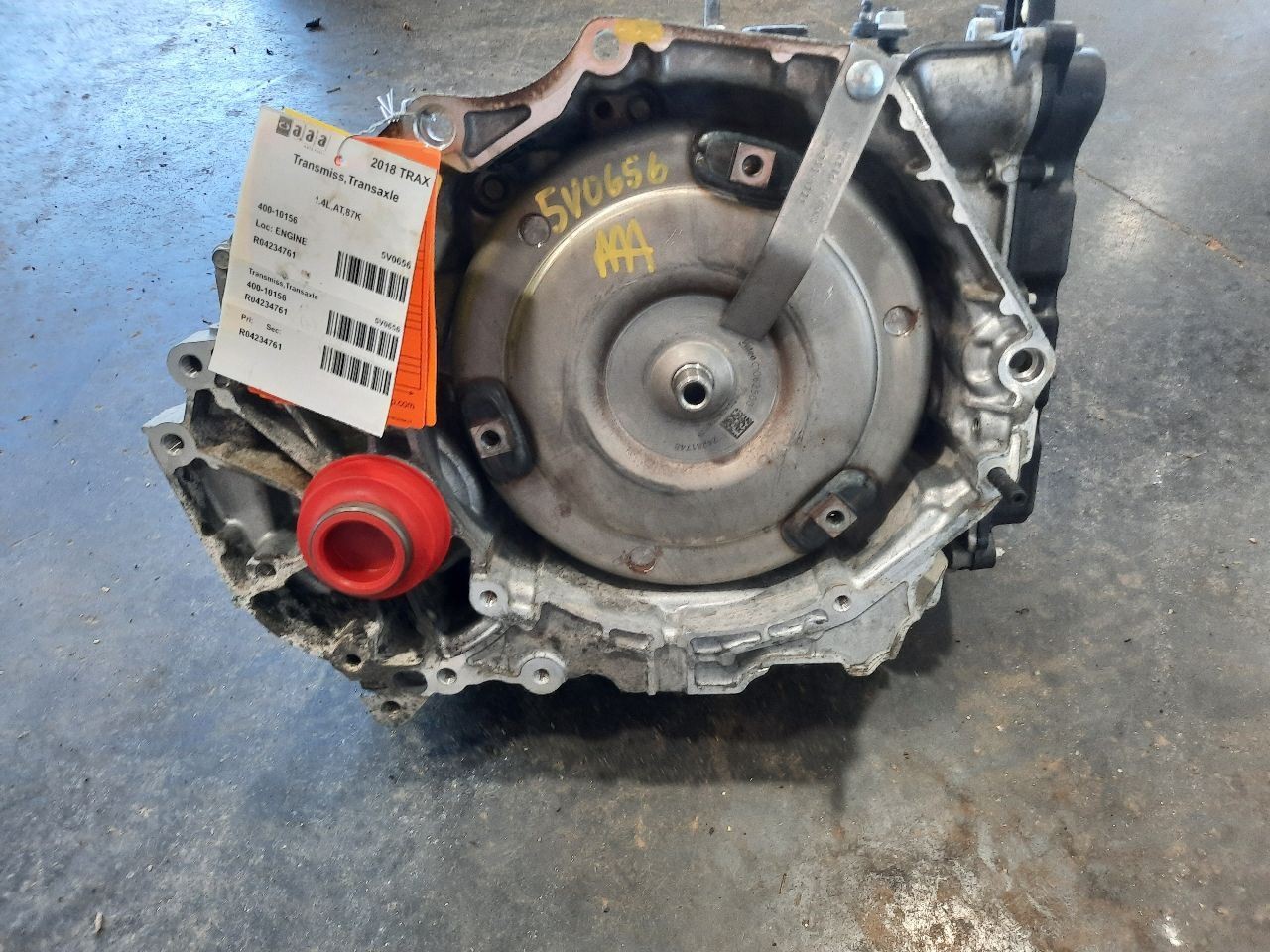 Item Description **6 MONTH WARRANTY!! 60 DAY NO HASSLE RETURNS!!** **This for a USED OEM Transmission/Transaxle Assembly pulled from a 2018 TRAX with 87000 actual miles on it.** **Here are our part notes about this specific part:** **1.4L,AT,87K** **Our Part #: 400-10156, 4234761** **Our Stock#: 5V0656** Please see the fitment section below to make sure this will fit your vehicle. Pay special attention to any options listed!!! In some cases, it may only fit vehicle with certain options or specific ID#s as listed below. **ENCORE 16 AT, (1.4L), (6 speed), VIN B (8th digit, opt LUV, opt MNK), AWD** **ENCORE 17-19 VIN B (8th digit, opt LUV), AWD** **ENCORE 20 (VIN B, 8th digit, opt LUV), AWD** **ENCORE 21 (AT), AWD, opt LUV** **TRAX 16-19 AT, (1.4L), AWD** **TRAX 20 (AT), (1.4L), AWD** **TRAX 21 (AT, 1.4L), VIN B (8th digit, opt LUV), AWD** Whats Included? Whats Included? FAQ/ Help Shipping Payment Returns/Warranty #### Whats Included? ``` Here is a short description of what will generally be included with your item. If you would like more information or are unsure if something will come with your item, PLEASE ASK!! A/C Compressor: Includes the clutch/pulley assembly A/C Condenser: Sensors and hoses are not included ABS Units: Include the ATTACHED electronic module unless otherwise noted Alternator: Includes the pulley. Any brackets are not included Axle/CV shaft: Does not include the axle nut Blower Motor: Include the squirrel cage/fan blade Caliper: Includes the bracket and slides. Slides are not covered under warranty Column Switch: Includes wiring (if applicable) up to the first point it can be unplugged Control Arm: Includes the ball joint and any bushings Coolant Overflow Bottle: Cap is included Cowl Vent Panel: See Our Part notes, often sold as one side only Differential Carrier: Does not include axles Door Trim Panel: Includes handle and armrest. Does not include window/lock switches Engine: Included for convenience unless otherwise noted. These parts are not covered under warranty: Intake manifold, fuel injectors, oil pan, sensors, water pump Not included: Throttle body, Turbo, wiring harness exhaust manifold (may be left on in certain cases) Exhaust Manifold: Does not include turbo where applicable Fan Assembly: Includes motors, shroud, and blades. Fuel injectors: See our part notes Fuel Filler Door: Includes hinge. Does not include bolts/hardware Fuel Pump: Includes sending unit and any molded hoses that are non-removable Headlight: Brackets are included unless otherwise noted. HID headlights include the bulbs and ballast Hub: Includes wheel studs Ignition Coil(s): See part notes Interior Rear View Mirror: Does not included bracket glued to windshield Jack: See part notes. If noted as assembly, it will include the lug wrench Mass Airflow Sensor: Does not include housing unless pictured Power Steering Pump: Includes pulley and ATTACHED reservoir. Remote reservoirs and brackets will not be included Power Steering Gear: Includes pitman arm Rack and Pinion: Includes tie rods but they are not covered under warranty Radio: Pay special attention to our fitment description. Often times radios are more than one piece and we sell them each separately Spindle/Knuckle: Does not include hub unless noted Starter: Includes solenoid Strut: Struts are left assembled and include top plate, spring, and dust boot (dust boots on used struts are rarely in perfect shape) Stabilizer Bar: Does not include links or bushings Sunvisor: Does not include clip Taillight: Pay special attention to fitment as we list the trunk lid mounted taillights as well as the corners. Does not include bulbs Temperature Control: Includes all knobs, buttons, and sliders Throttle Body: Includes sensors but they are not covered under our warranty Transmission: Automatic transmissions include torque converters and sensors. Many newer transmissions require a relearn/programming procedure. Manual transmissions do not include any part of the clutch system. Transfer Case: Does not include electric shift motor Washer Reservoir/Bottle: Includes cap unless noted Wheel/Rim: Does not include center cap, tire, or lug nuts Window Regulator: Does not include motor unless noted (most are noted with motor) Wiper Motor: Does not include arms or transmission unless noted Wiper Transmission: Does not include motor or arms unless noted ``` FAQ/ Help #### FAQ/ Help ``` Will this fit my vehicle? Is this the right part? This is the most common question that we get. The fitment information can be confusing if you don't buy replacement parts everyday. Please contact us if you are unsure!! We try to respond to questions as quickly as possible and we are more than happy to answer any questions as best as we can. In order to speed up the process, it is very helpful, but not required, for you to send us your full VIN number along with your question. It looks like its the same color as my car, how can I tell for sure? The best way is to match the manufacturer paint code. Most of the time we include the paint code in our part notes. If you don't know what a paint code is or where yours is located, please feel free to ask. We are happy to help. I only see photos of the vehicle and not the actual part you are selling. Can you send me some? Our most recent listings include actual photos when we can provide them. If you would like an actual photo, we are more than happy to take one after the purchase for your approval before the part ships. In certain cases we will take actual photos before a purchase is made. This is on a case by case basis. Send us a message and we will let you know if it is possible for us to do so I see a wheel that says it is "B" condition, what does that mean? Grading of parts is a very subjective process but we do our best to keep it uniform. Here is a brief description of wheel grades: A Condition, A-COND = This is the highest grade used wheel. It will have very minor imperfections but will be in better condition than 90% of vehicles on t