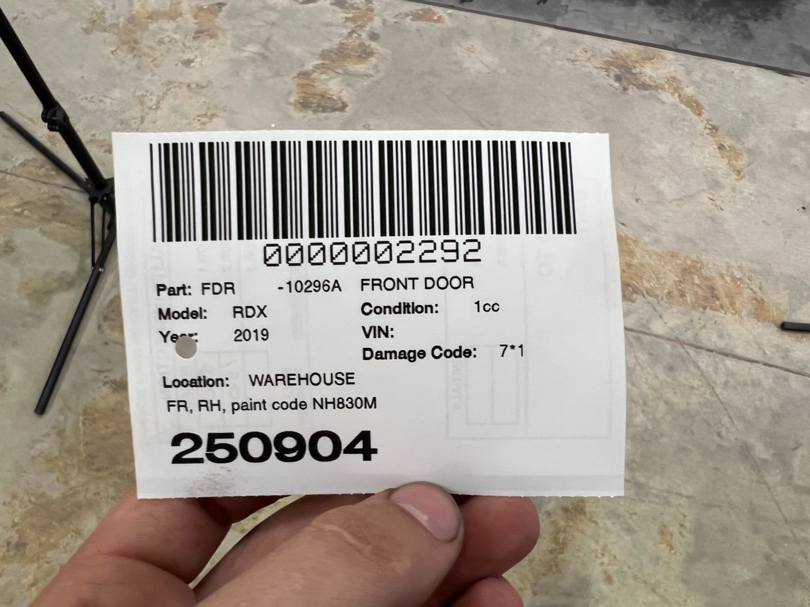 2019-2024 ACURA RDX FRONT RIGHT PASSENGER DOOR W/ HANDLE / WINDOW COLOR- NH830MX